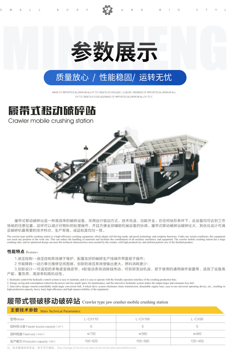 供給キャタピラー円錐破砕機移動破砕ステーション鉱石粉砕機車載破砕機石英砂生産ライン