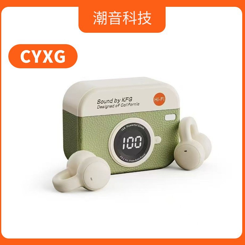 Q87 レトロカメライヤークリップ Bluetooth ヘッドセットレトロレザーテクスチャ長時間装着痛みのない骨伝導 HD デジタルディスプレイヘッドセット