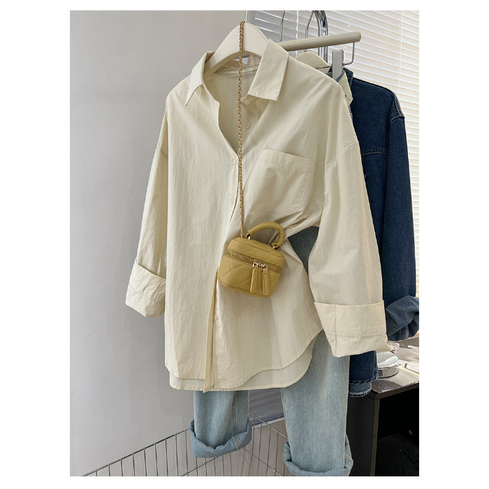 純綿の純色のシャツの女性は春と秋のゆったりとしたカジュアルでやせています。