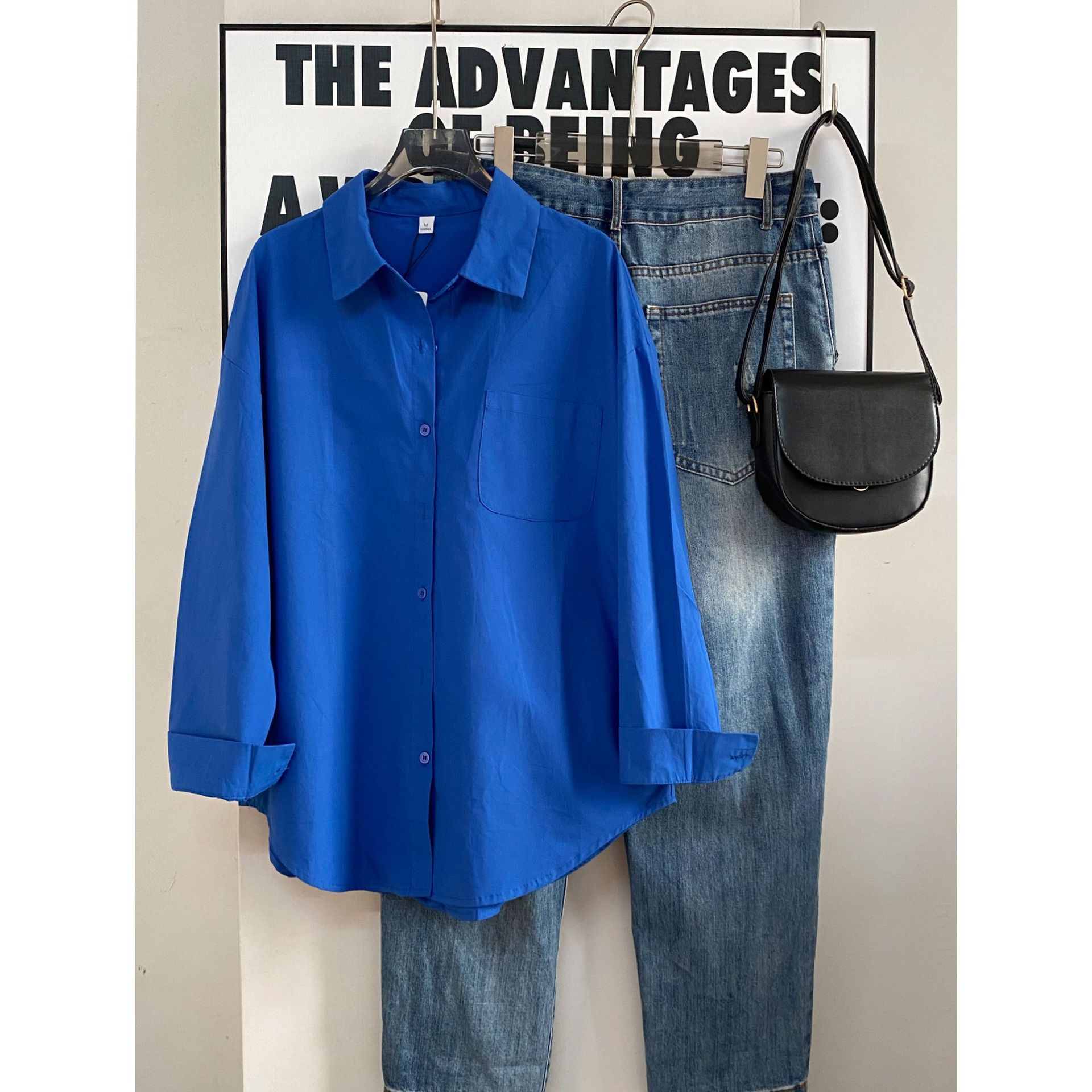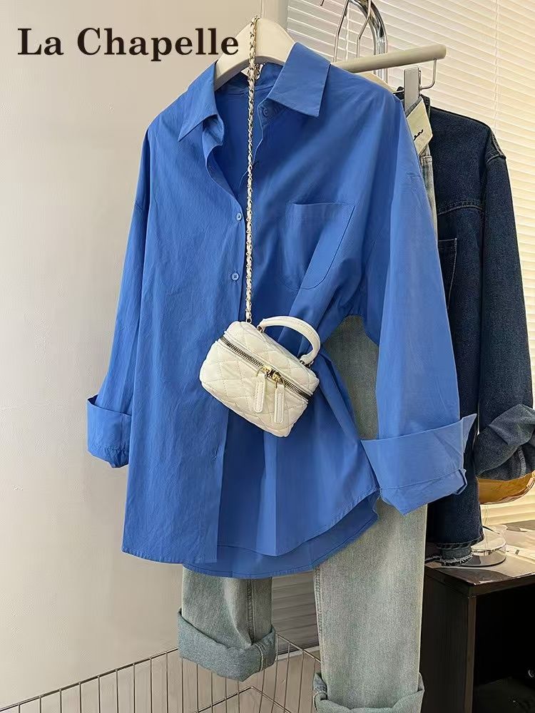 [现货]克莱因蓝色衬衫女春秋季2025新款休闲宽松叠穿长袖衬衣外套