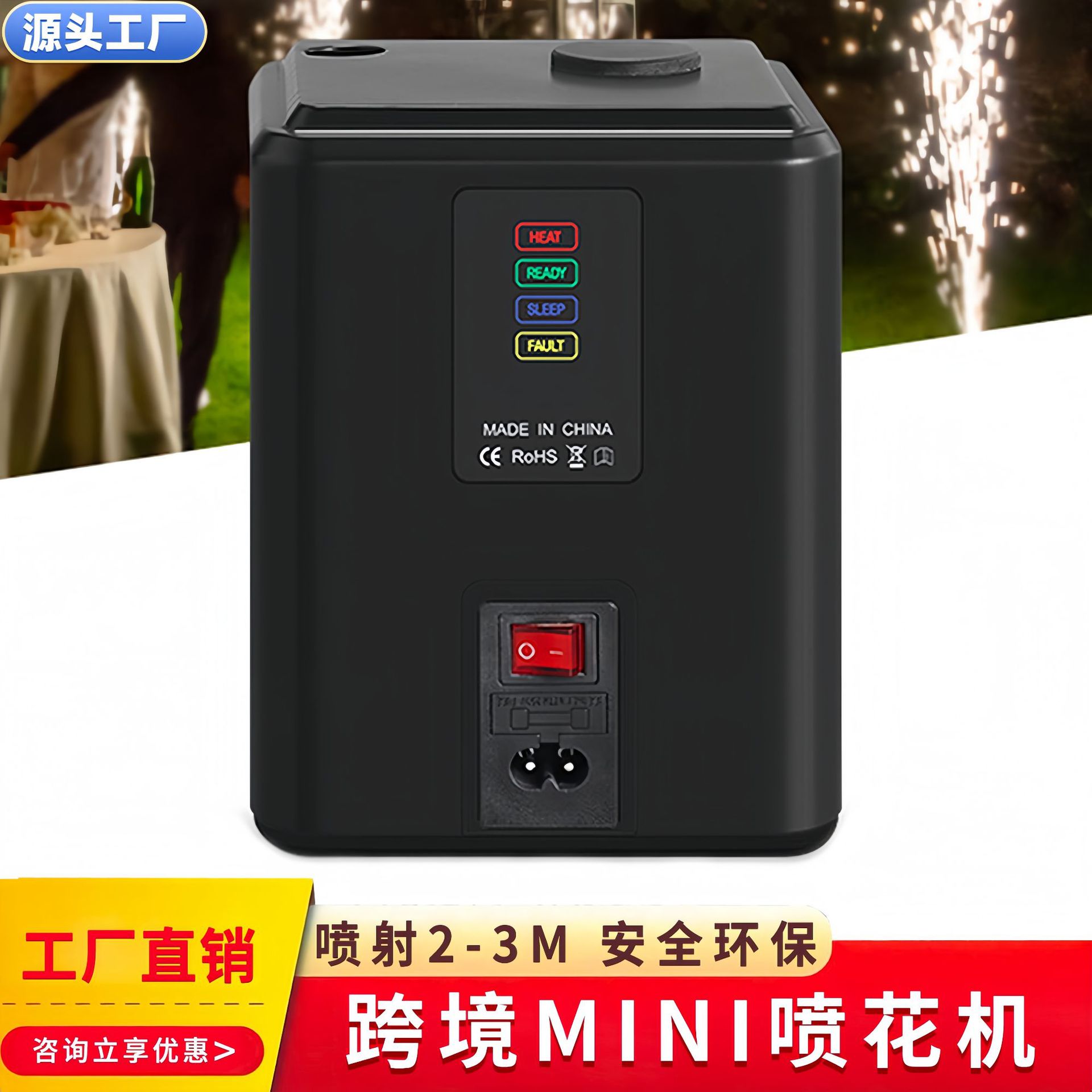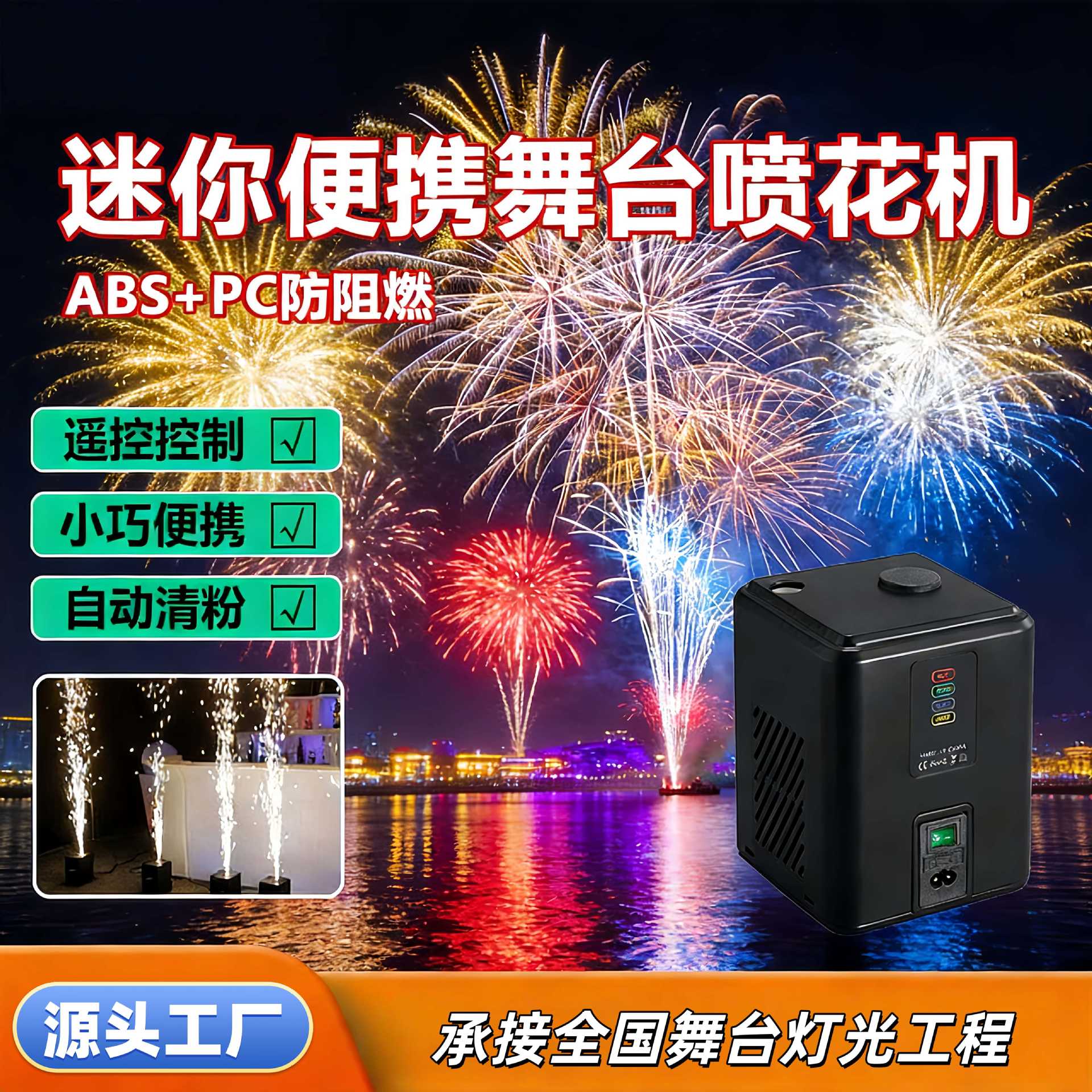 跨境爆款迷你电子烟花机舞台电子喷花机氛围道具黑色特效婚庆遥控