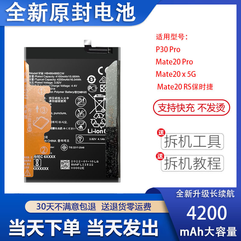 适用于华为P30pro手机电池mate20RS mate20X 5G原装解码电池板