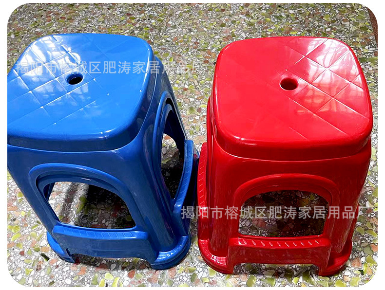 工場寮と家庭のリビングルームの太った人は椅子に座ることができます厚みのある耐圧プラスチックスツール赤と青の省スツール卸売