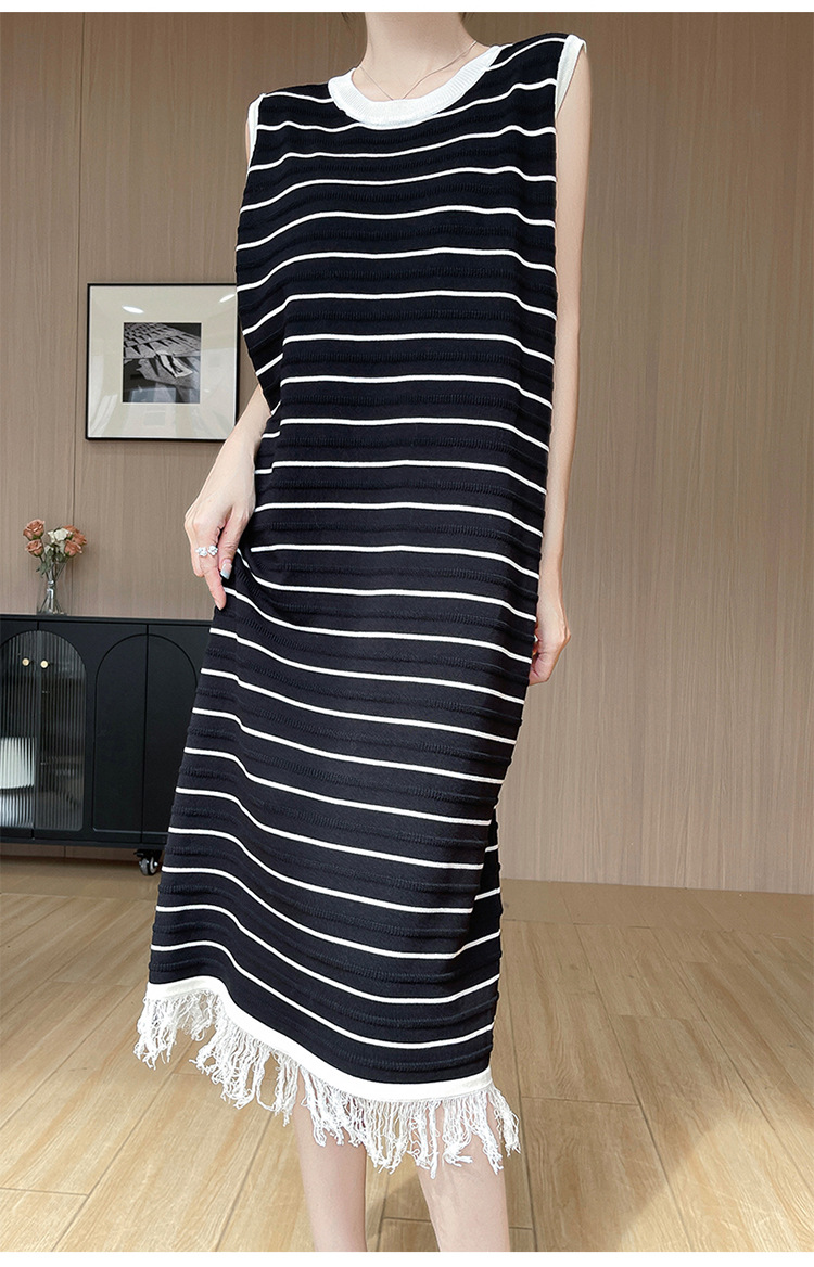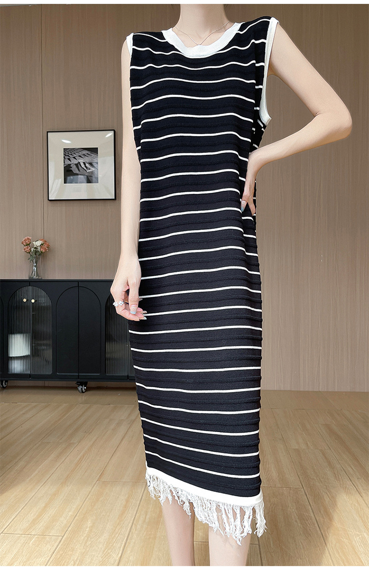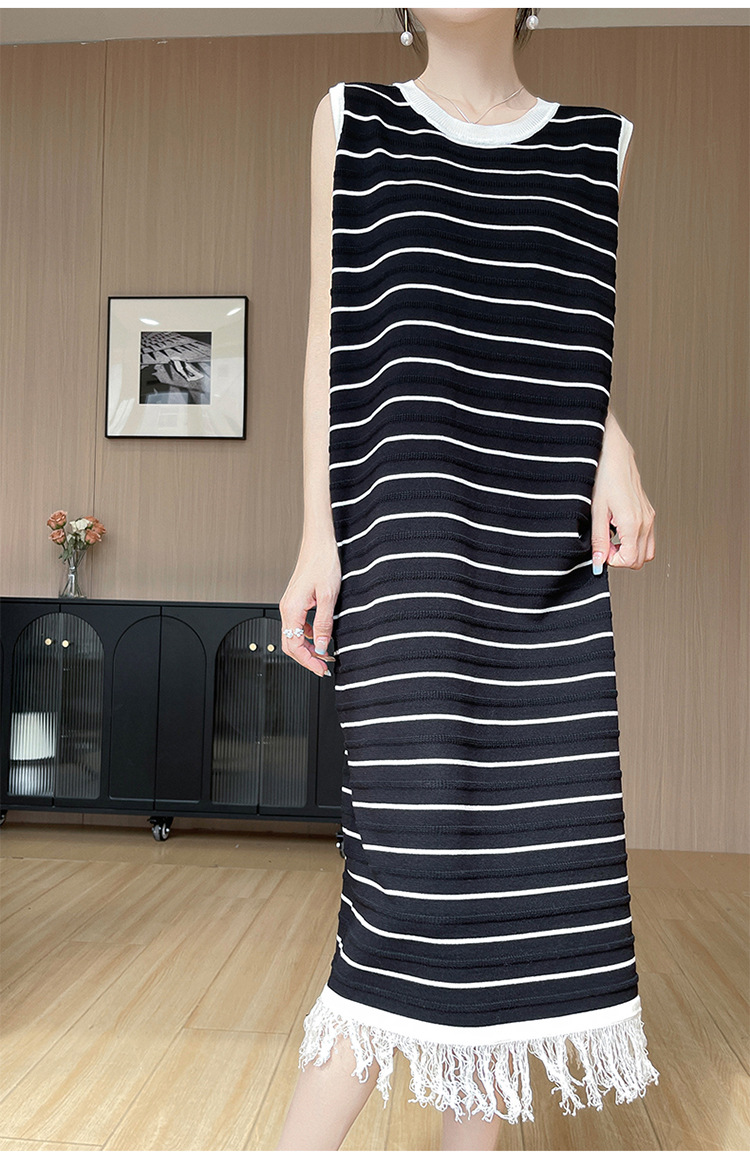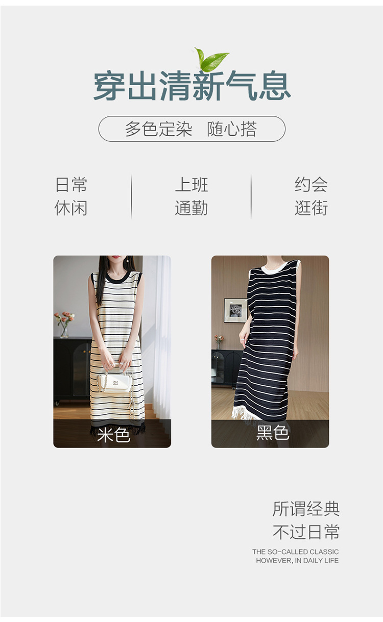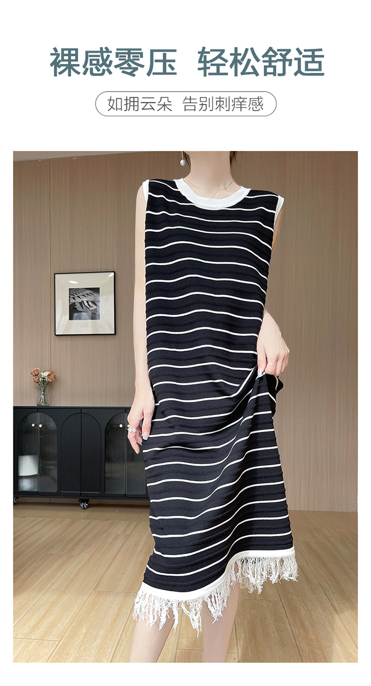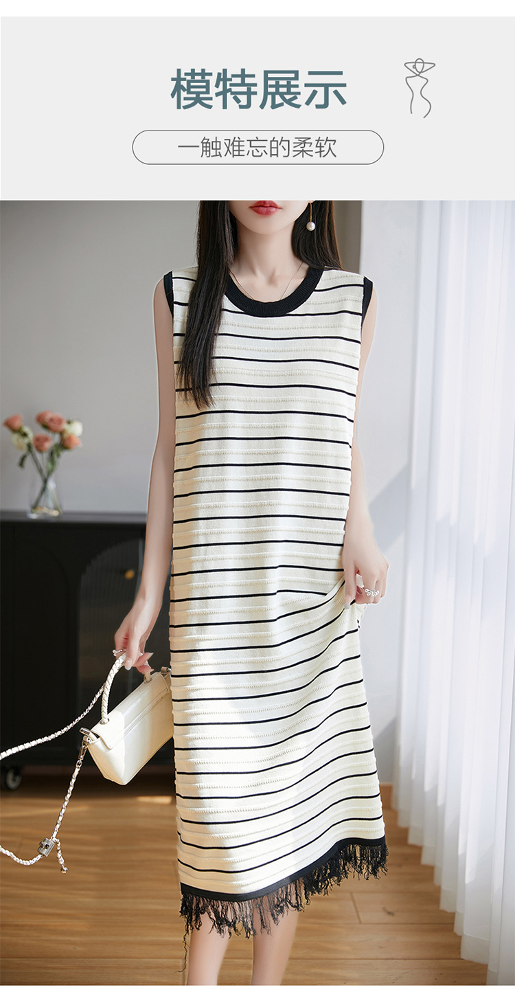 女性のためのロングアイスシルク Tシャツ 2025 夏の新しいファッション多用途ストライプインナーレイヤリングシャツノースリーブドレス女性のための