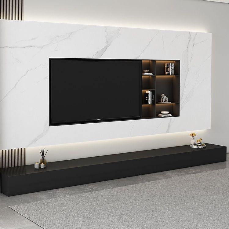 岩板黑色电视柜落地茶几组合客厅现代简约小户型高款实木电视机柜