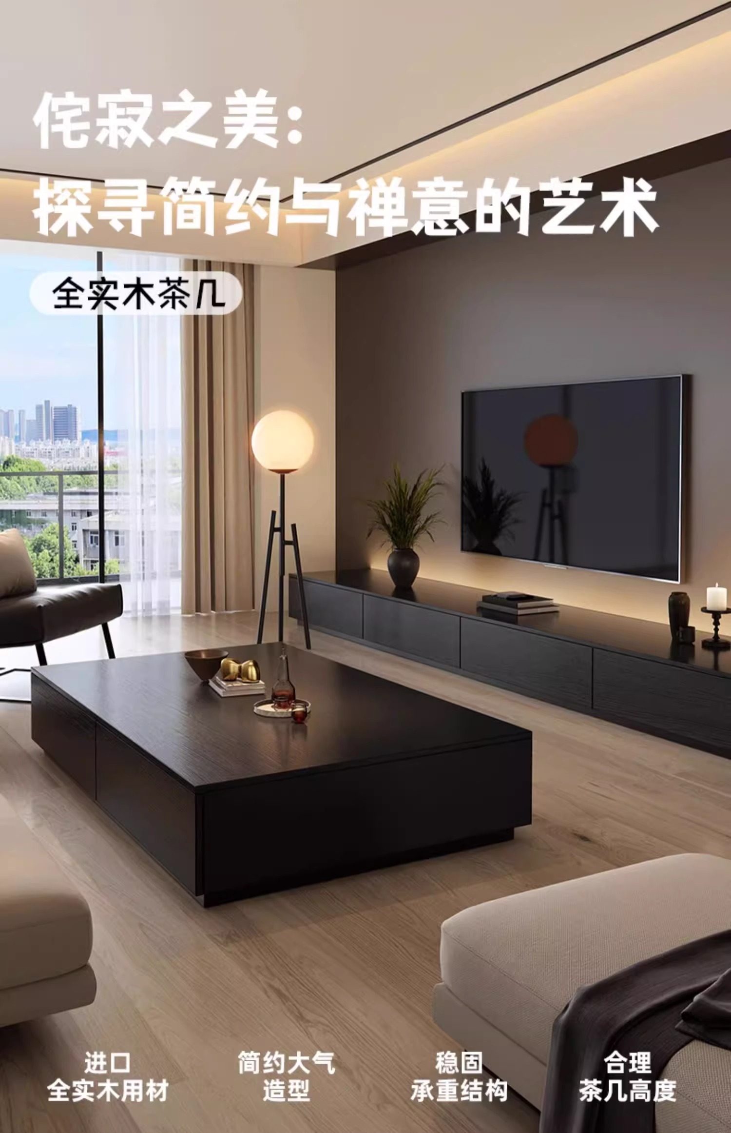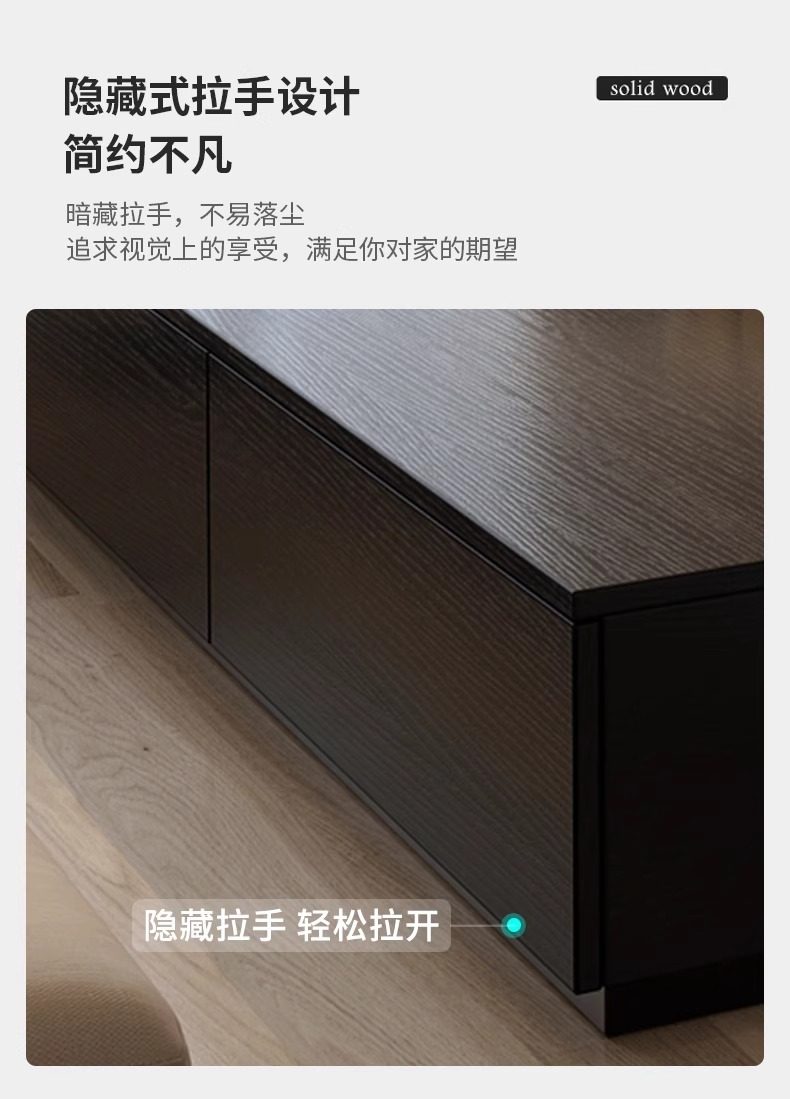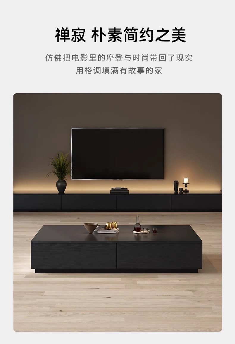 实木电视柜茶几现代简约客厅家用高级感落地轻奢黑色电视机柜