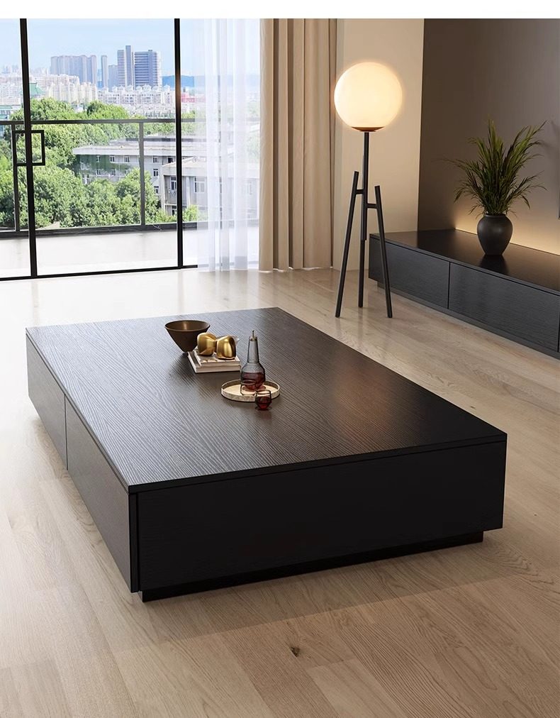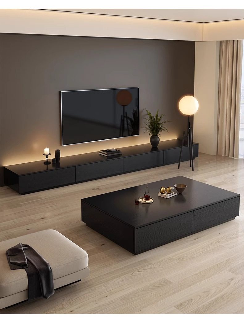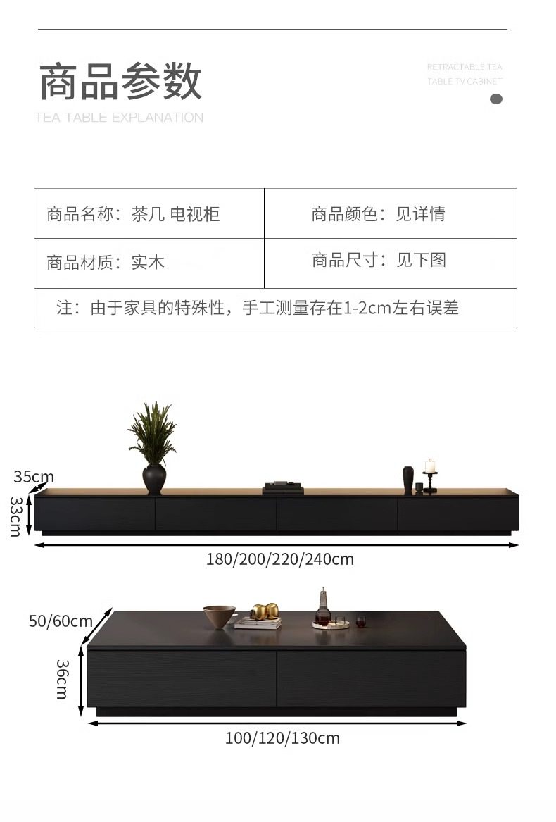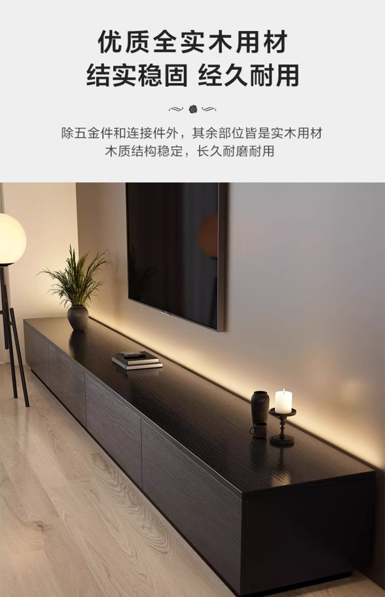 实木电视柜茶几现代简约客厅家用高级感落地轻奢黑色电视机柜