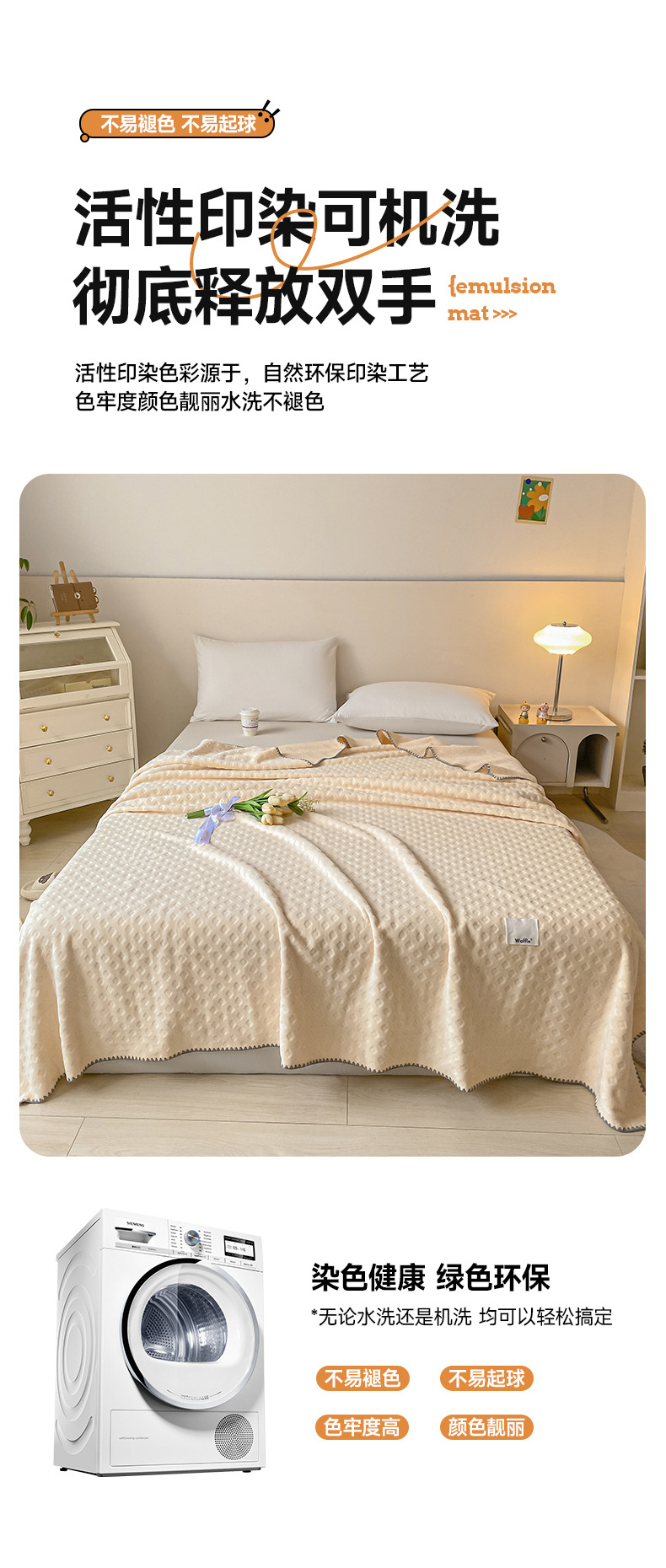 COLOR FASTNESS 110x150cm [子供用ブランケット]、120x200cm [学生用ブランケット]、150x200m [シングルブランケット]、180x20