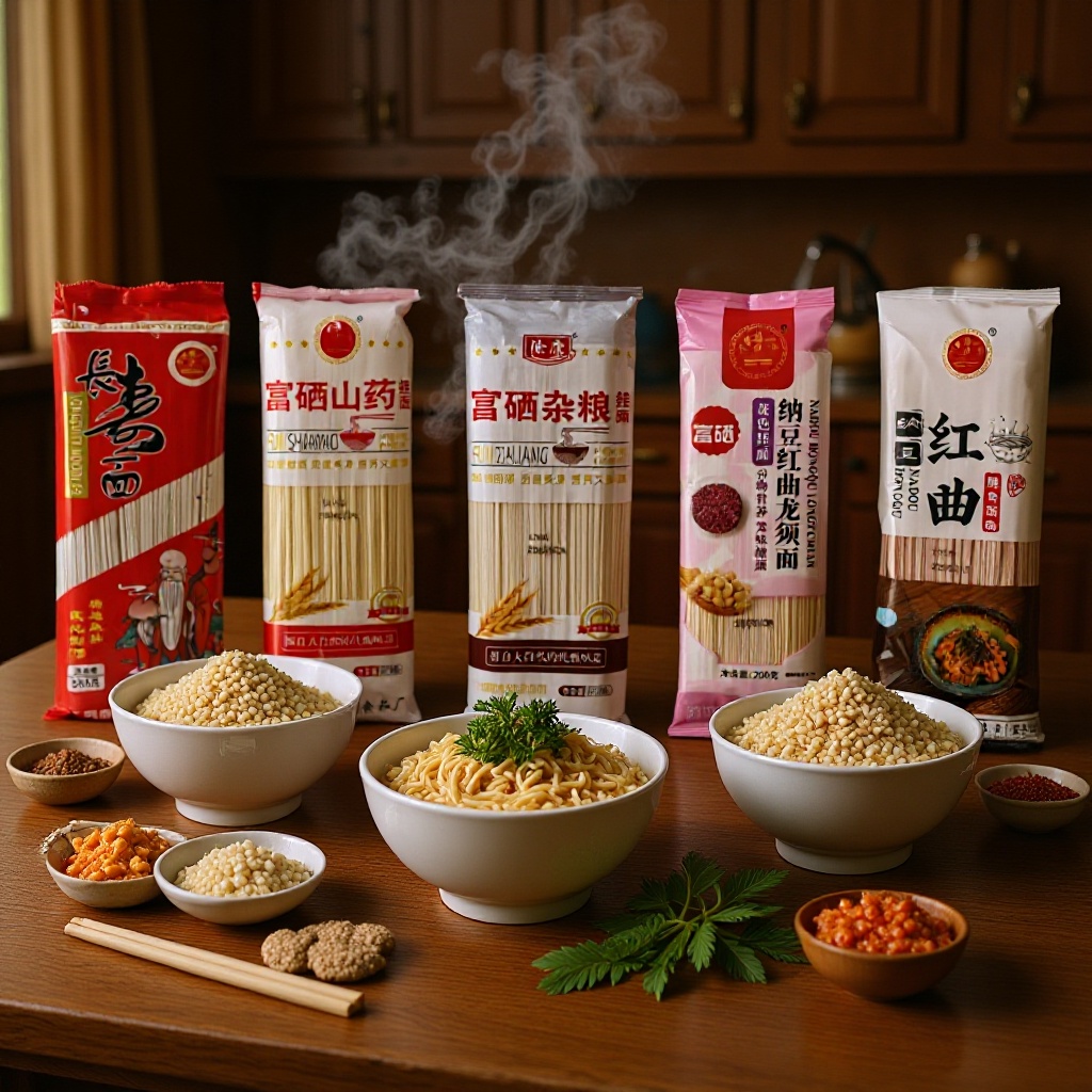 卵麺、トマト麺、蓮根粉麺、龍鬚麺、人参麺、羊乳シーバックソーン麺、果物野菜麺、朝食麺、セレン豊富