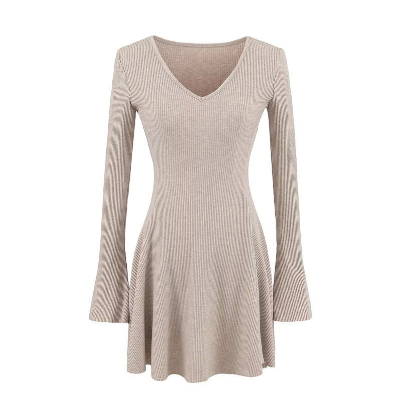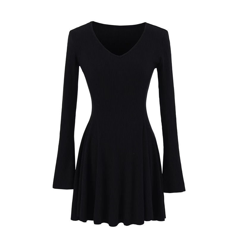 スリムでスリムな春の気質純粋な欲望スタイルのホットガールの新しいショートスカートと2025 Vネックの女性のニットドレス