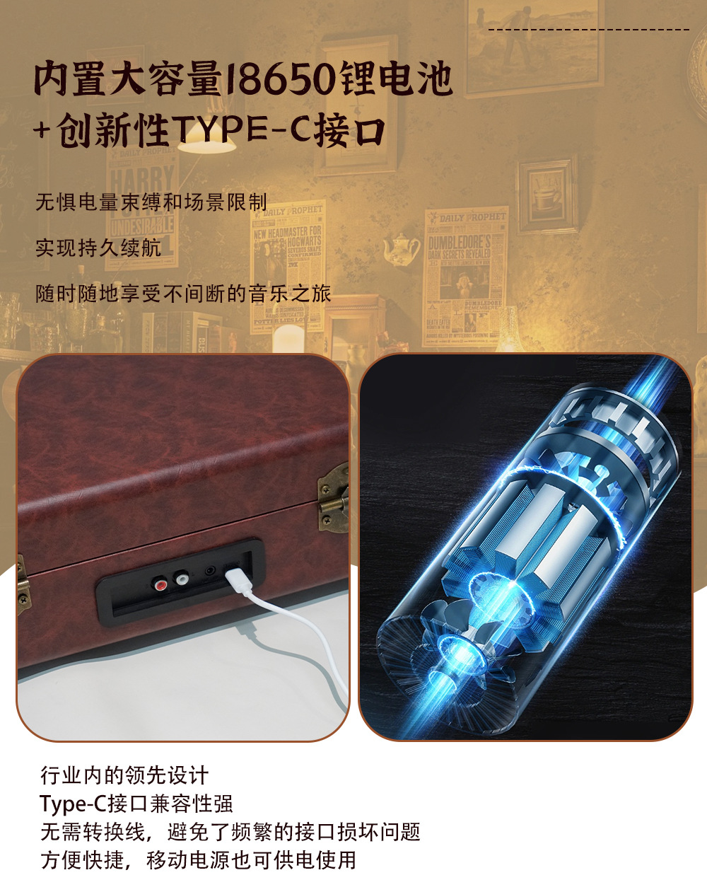 バッテリー内蔵、USBカード読み込み、録音機能付き、Bluetooth対応、ポータブルレコードプレーヤー