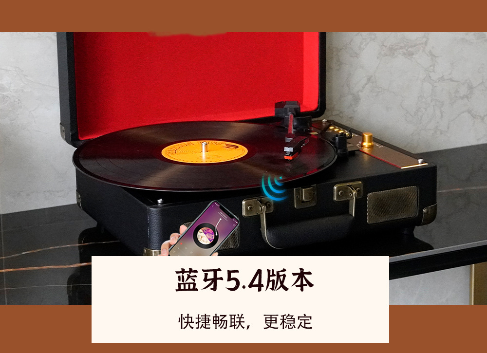 新型現代鉄三角金属レコード盤は古一体の黒ゴムレコード機のbluetoothオーディオハイエンドモデルに似せています。