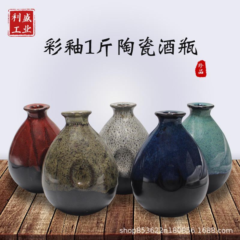 釉薬1斤の酒瓶陶磁器酒壇陶磁器1斤の酒壇メーカーは、手で瓶をつかむことができる