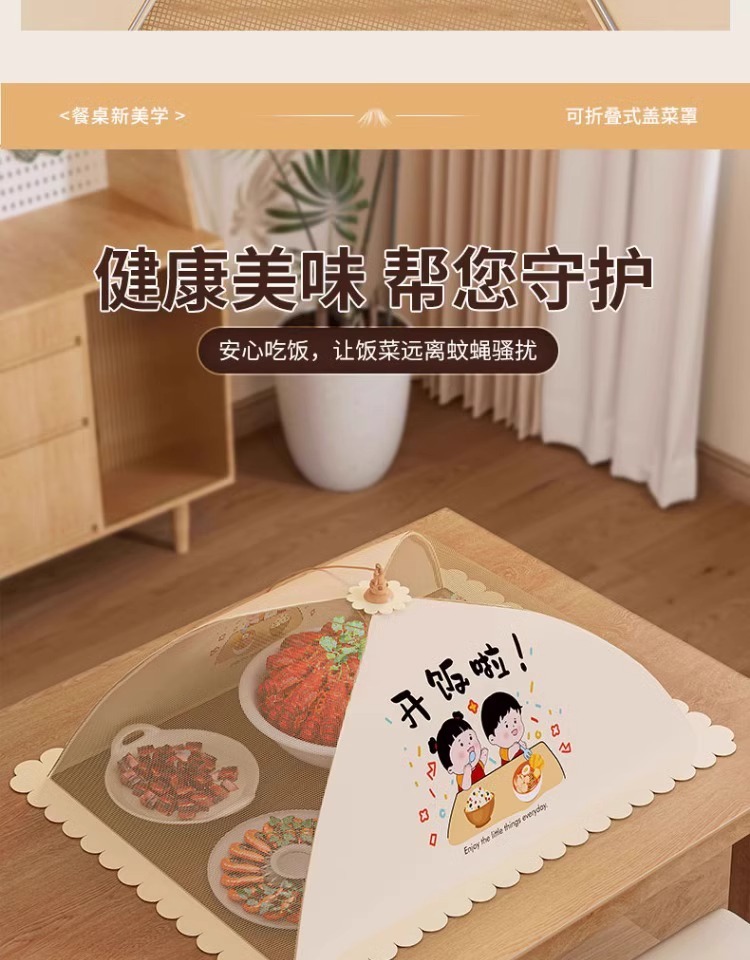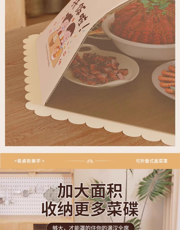 漫画風折りたたみ式大型防虫ネット、長方形の食品防塵カバー、家庭用キッチン用品、テーブルカバー