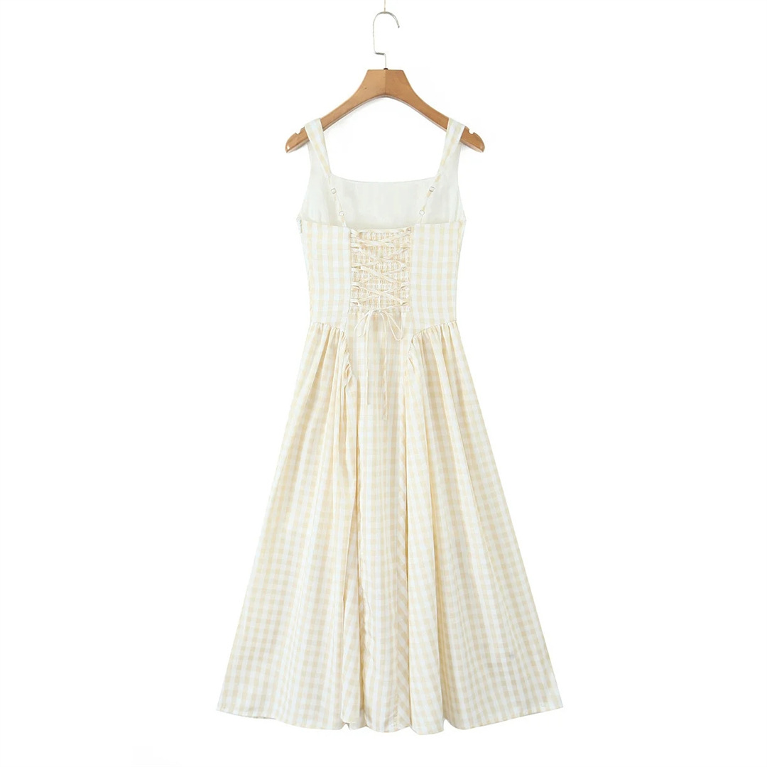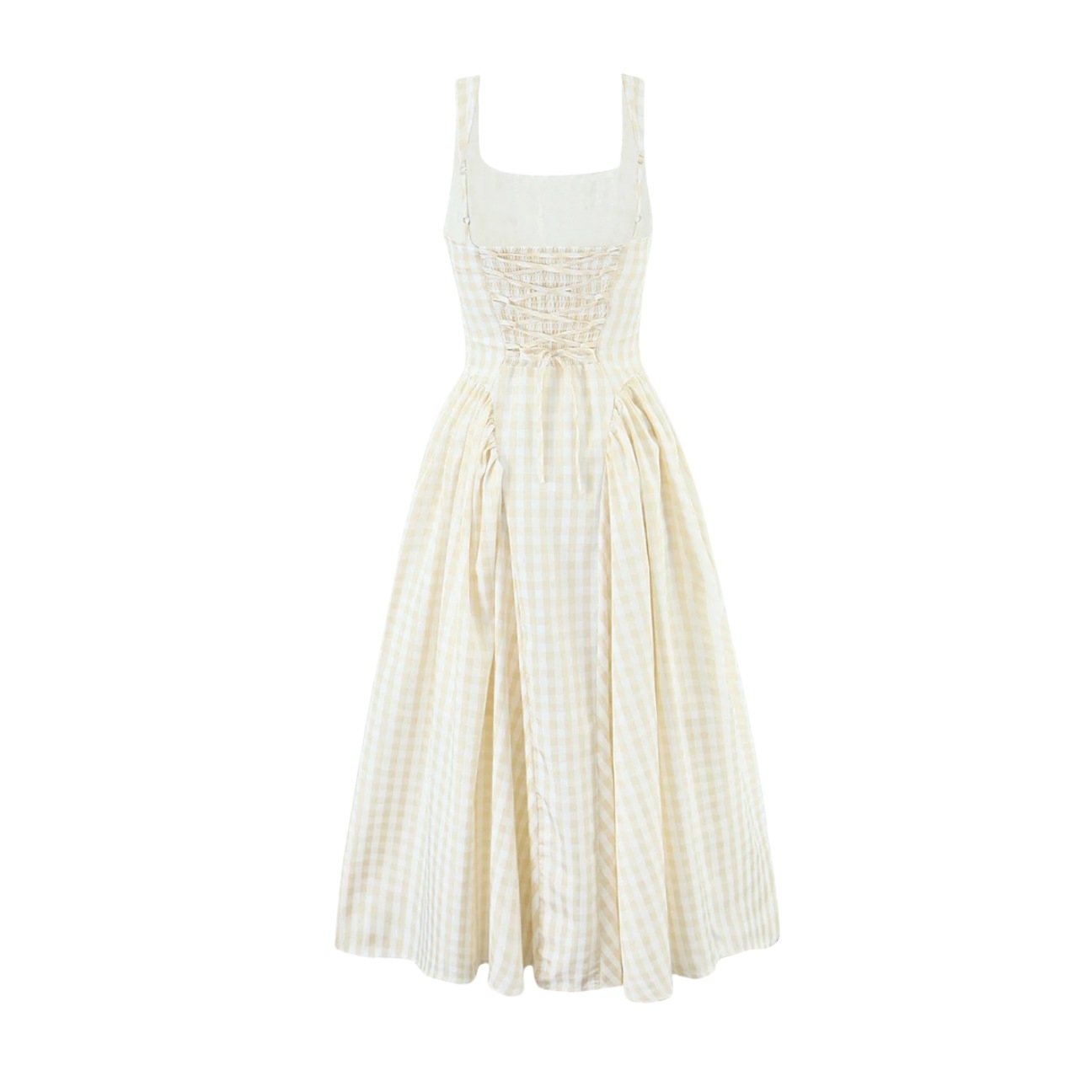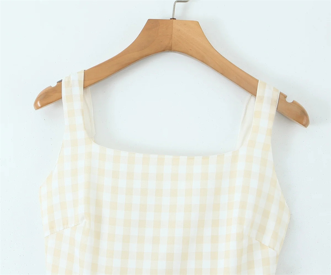 フランス式の方襟のサスペンダーのワンピースのデザイン感があります。