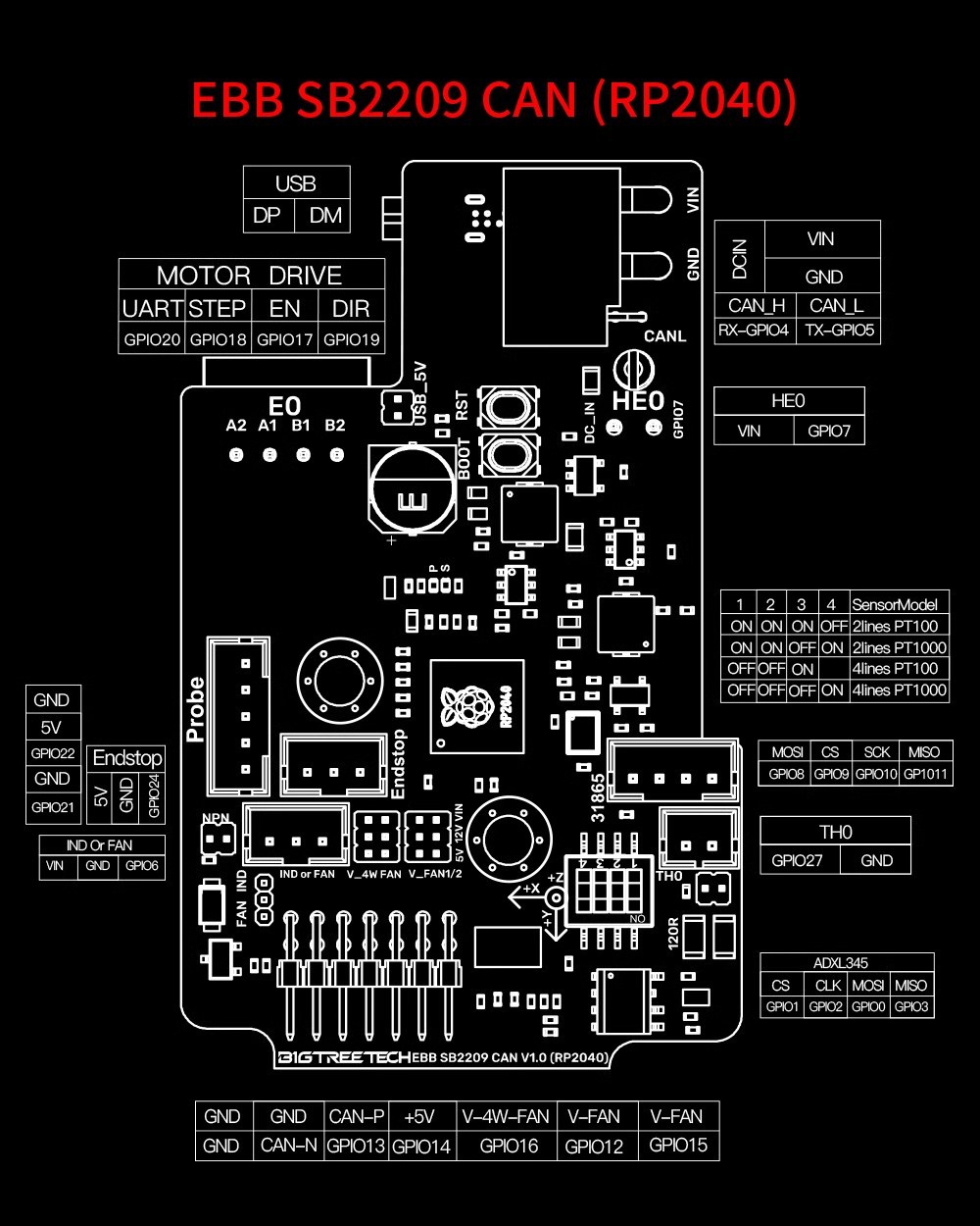 仕様 EBB SB2209 CAN,EBB SB2209 CAN V1.0(RP2040),EBB SB2209 USB,EBB SB0000 CAN (小型ボード),1.25端子プレプレスワイヤーキット(送料込み),デフォルトでプリプレスワイヤーが付属