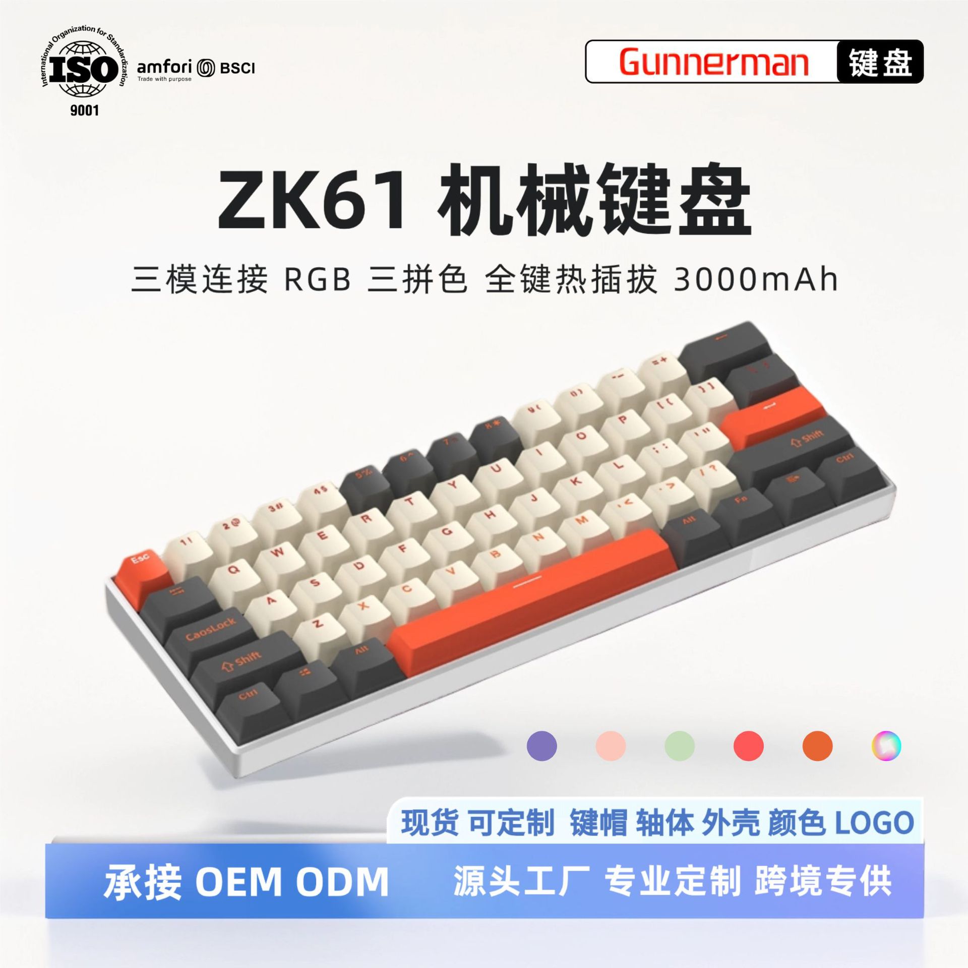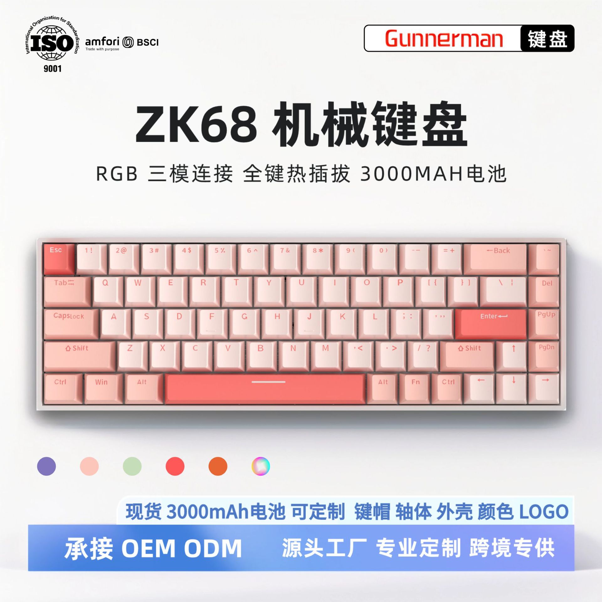 60%構成のZK68メカニカルキーボード、68キー、RGB発光、3モード、ゲーム、eスポーツ、オフィス、集賢軸、メカニカル緑軸