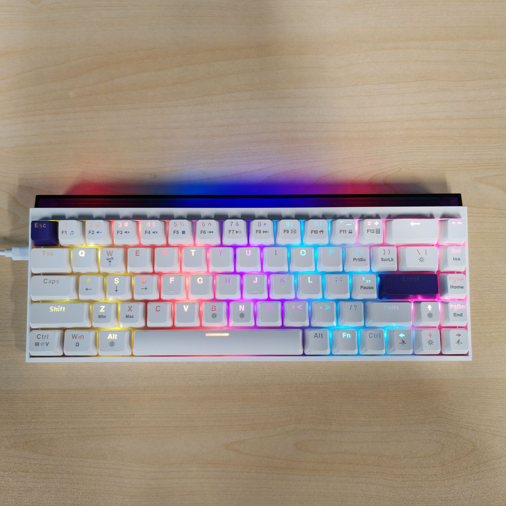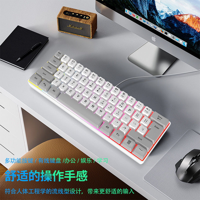 有线薄膜键盘61键迷你RGB便携适合游戏批发RGB游戏键盘蓝白