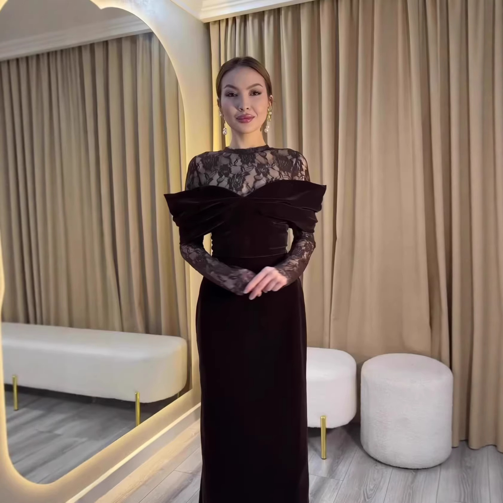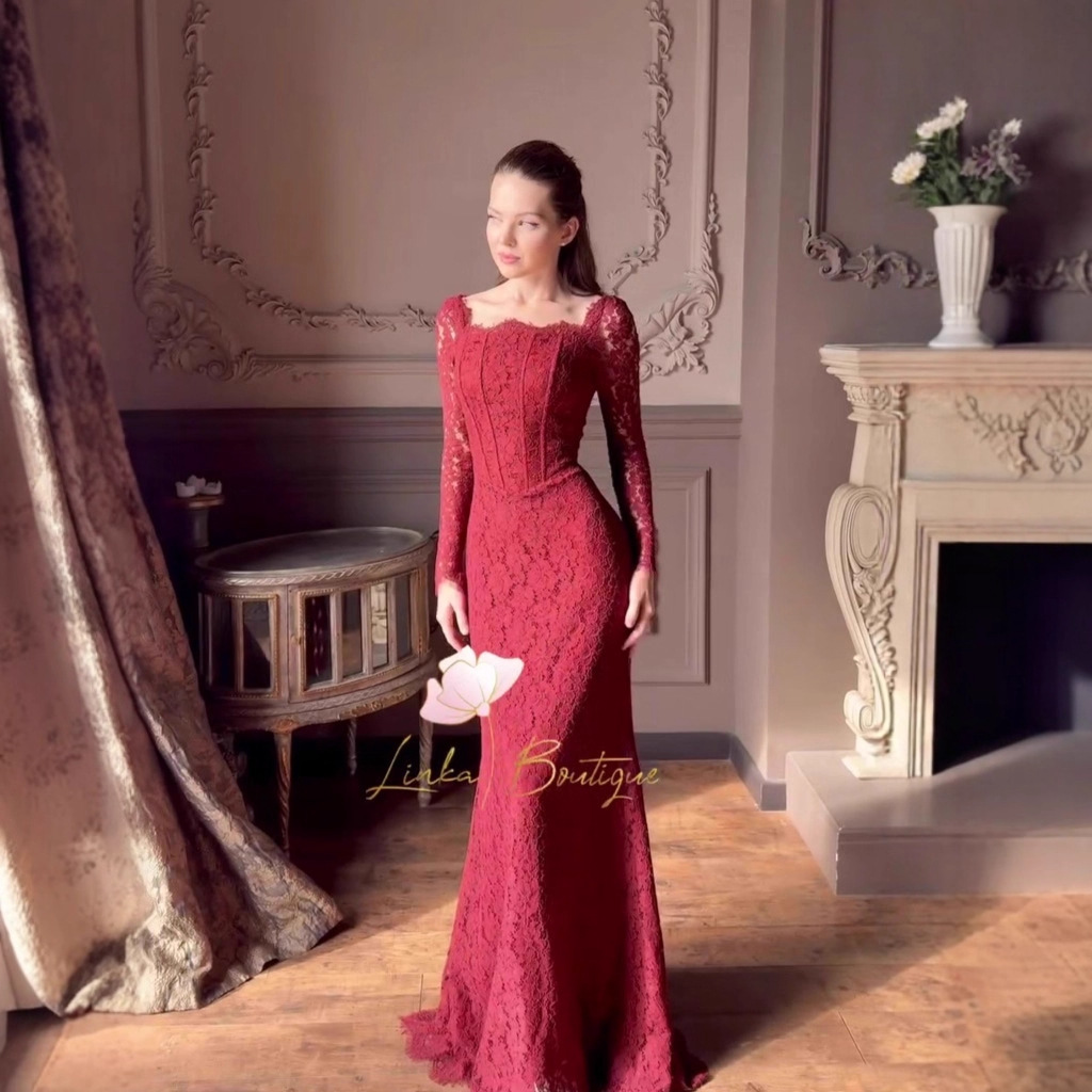 亚马逊欧美跨境2025年秋季复古高定蕾丝鱼尾礼服长袖长裙连衣裙