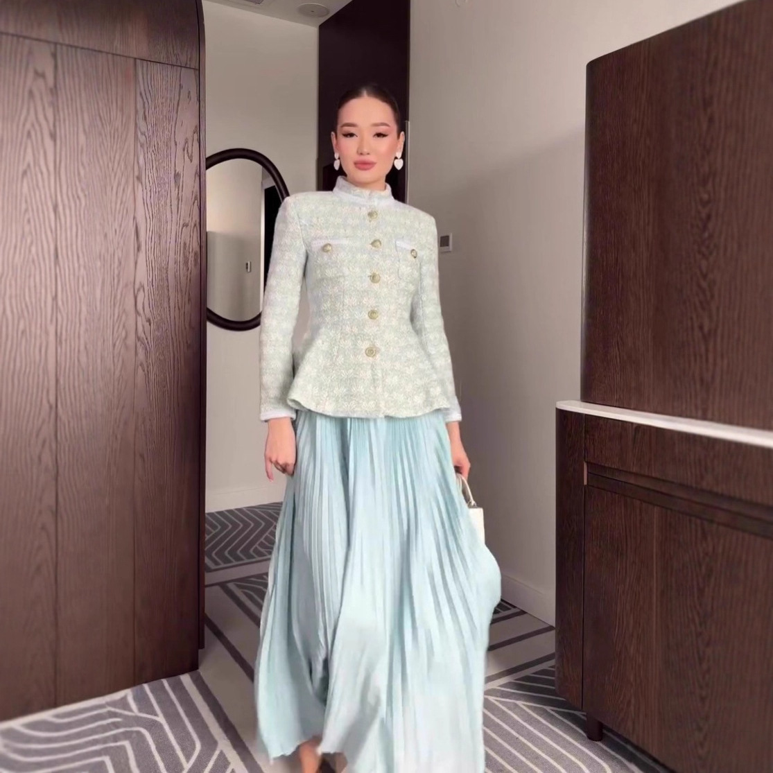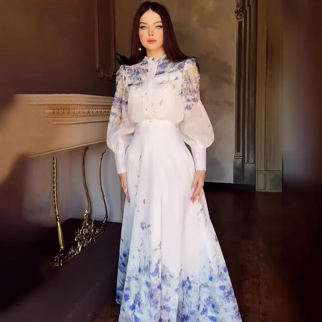 2025年春夏新型欧米クロスボーダー女装優雅ファッション気質長袖ロングスカート爽やか女神範スーツ