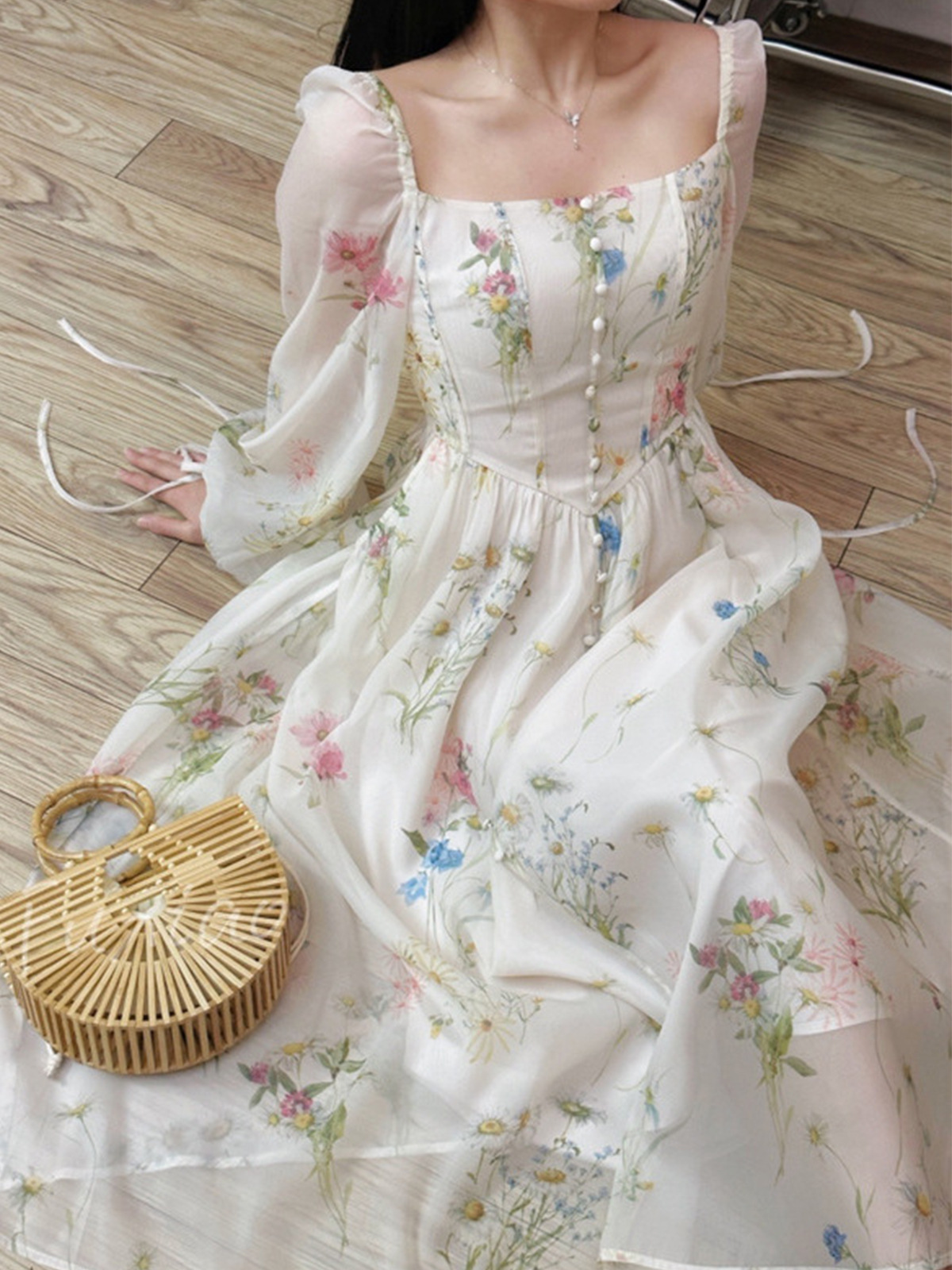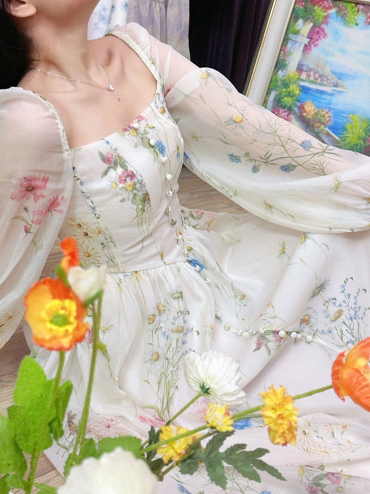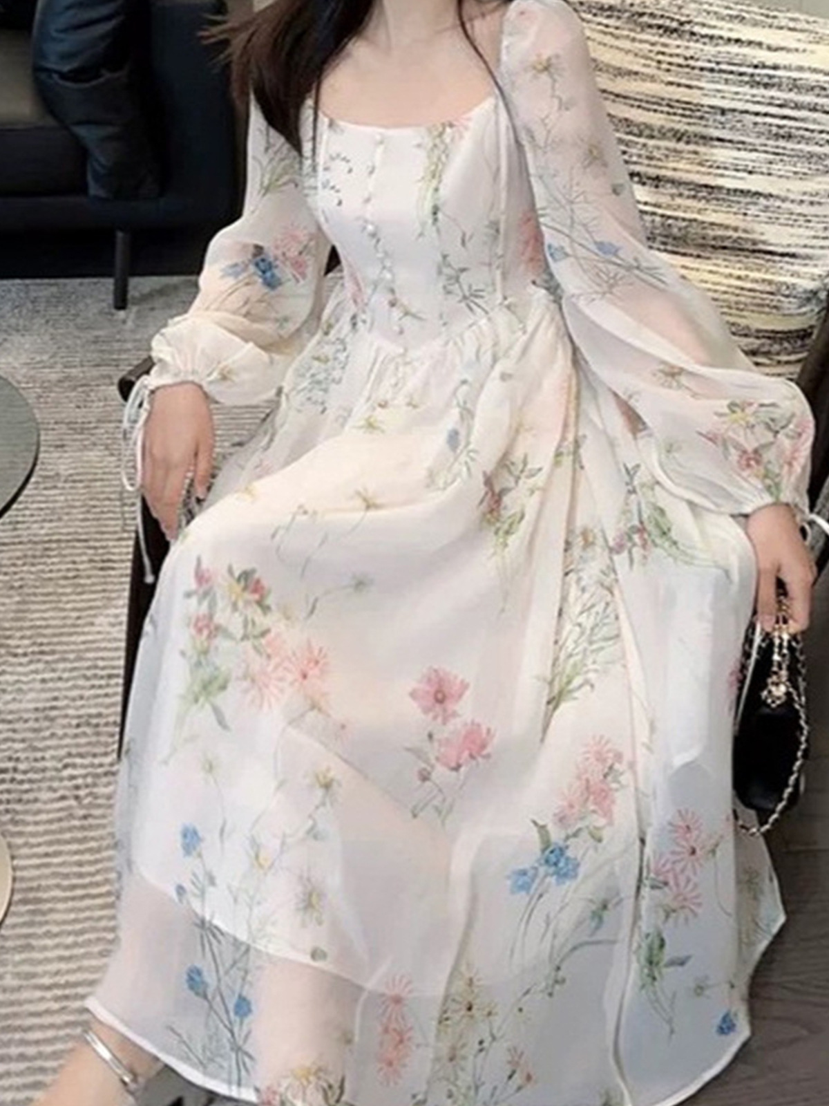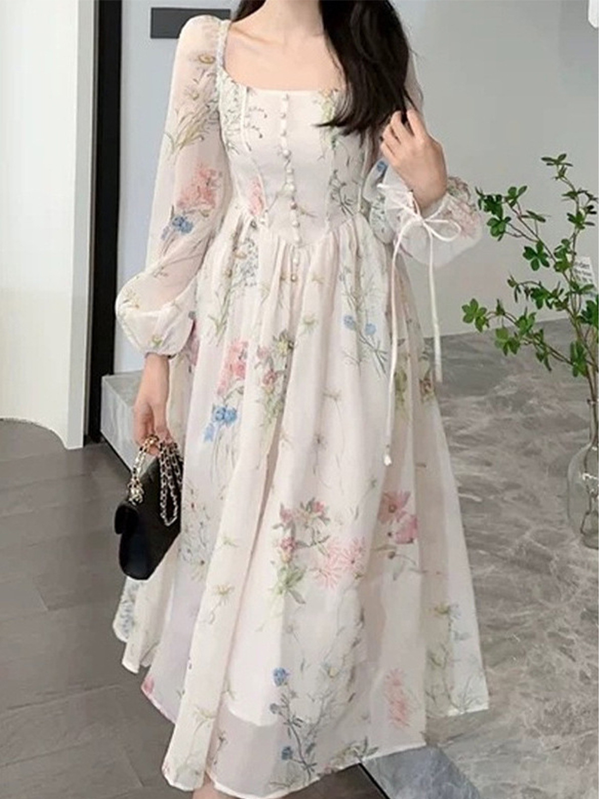 Amazonヨーロッパとアメリカのクロスボーダー2025春フェアリースタイルレトロセクシーな長袖チュニックロングスカートドレス女性用