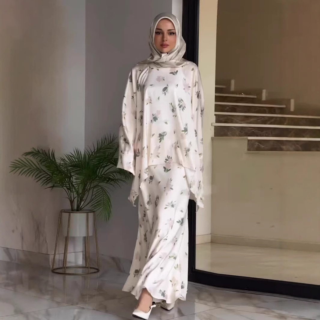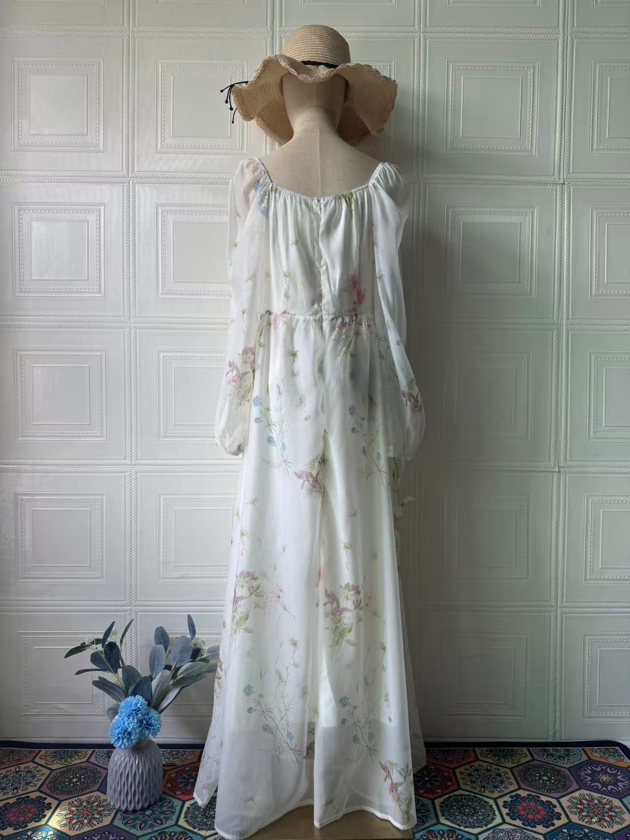 2025年春夏新型欧米クロスボーダー婦人服快適カジュアル家庭用外国貿易プリント長衣ワンピースセット