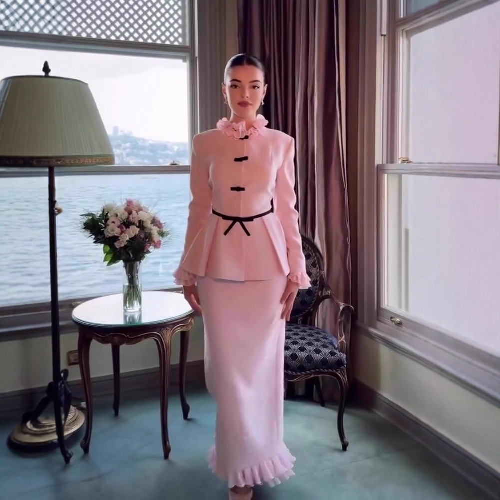 2025年に欧米の婦人服が国境を越えたアマゾンの純色の上品で暖かい雰囲気の長袖の上着のロングスカートの快適なスーツ