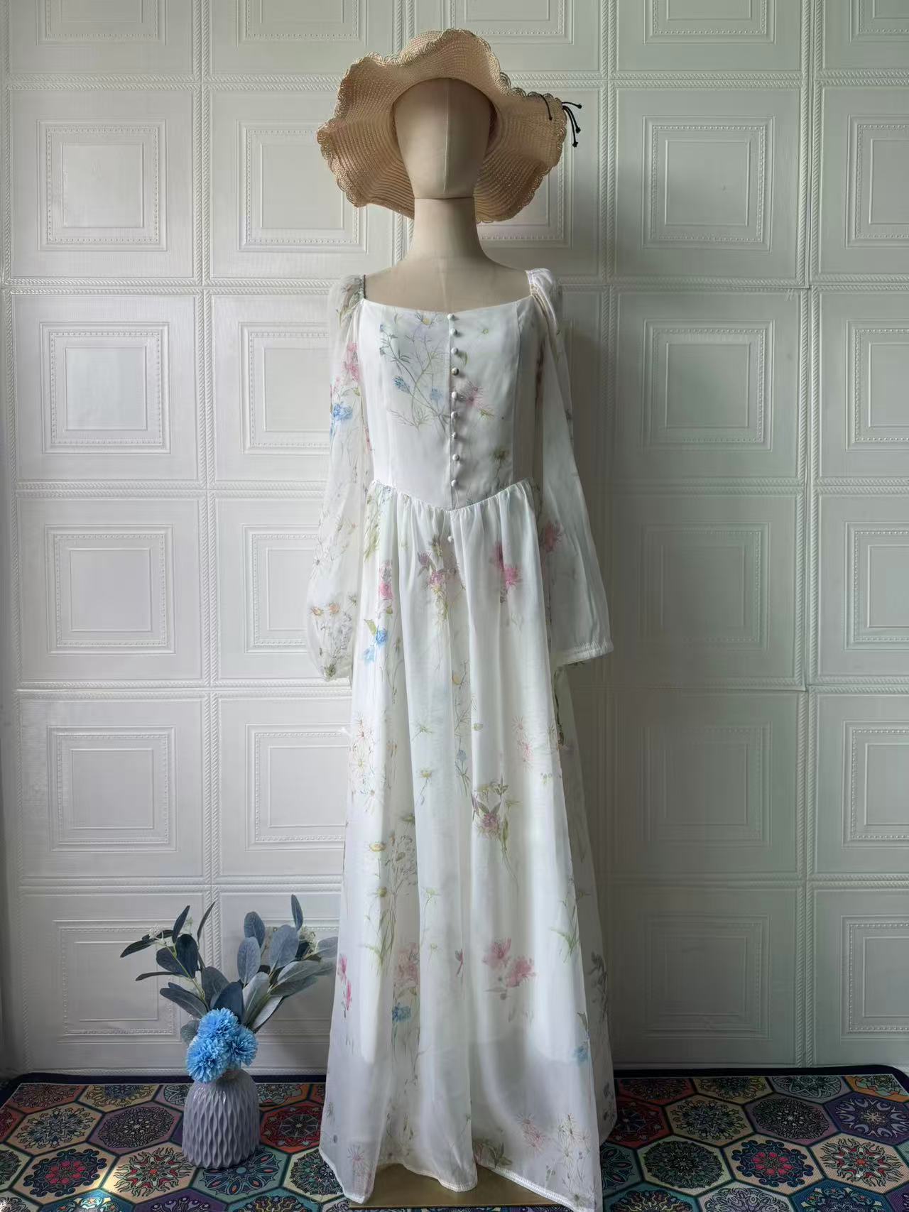 亚马逊欧美跨境2025年春季新款复古贵气柔媚长袖长裙礼服连衣裙女