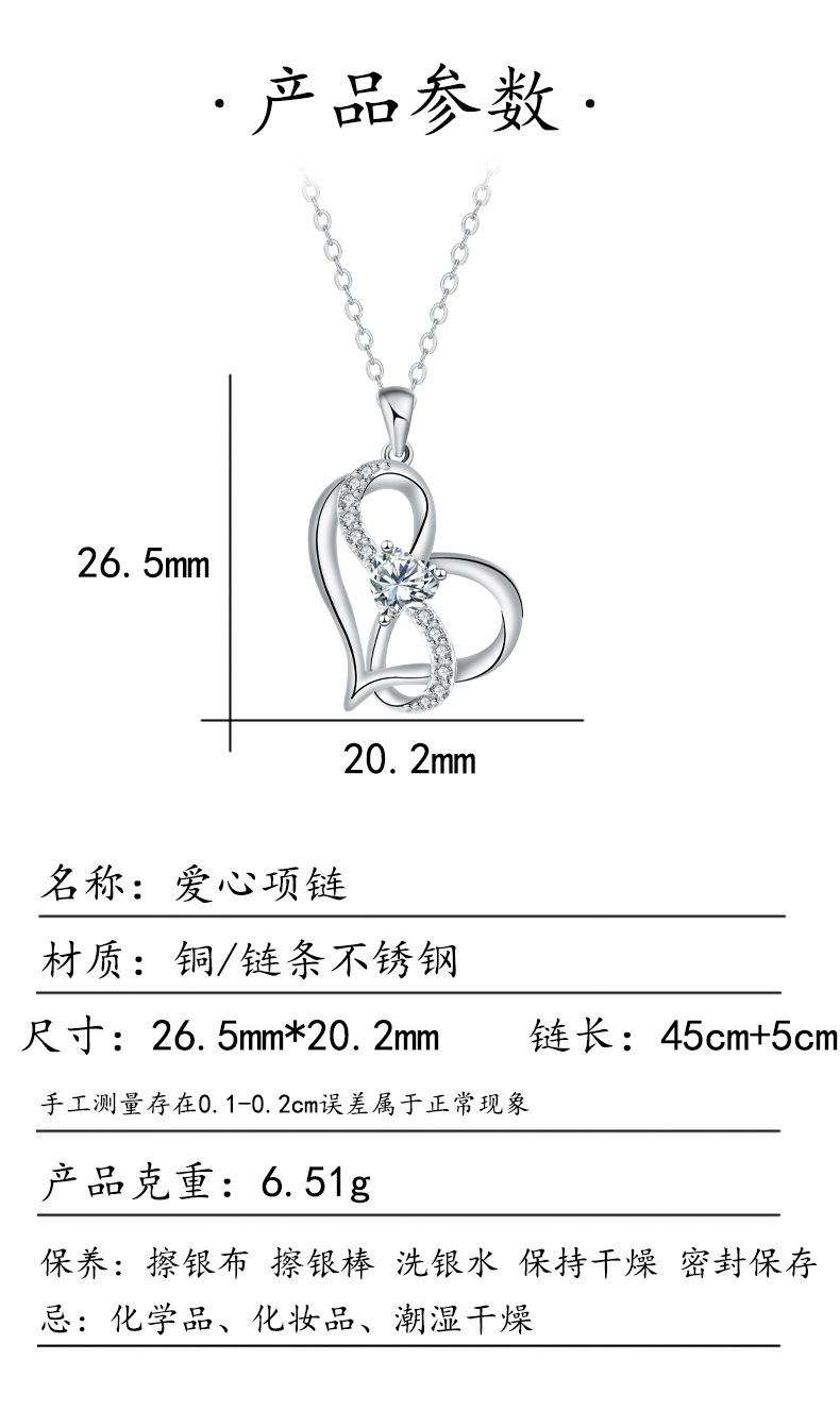 カカオそのクロスボーダー高级感エレガントハート型ペンダントローズネックレスレディース锁チェーン爱意アクセサリーギフト