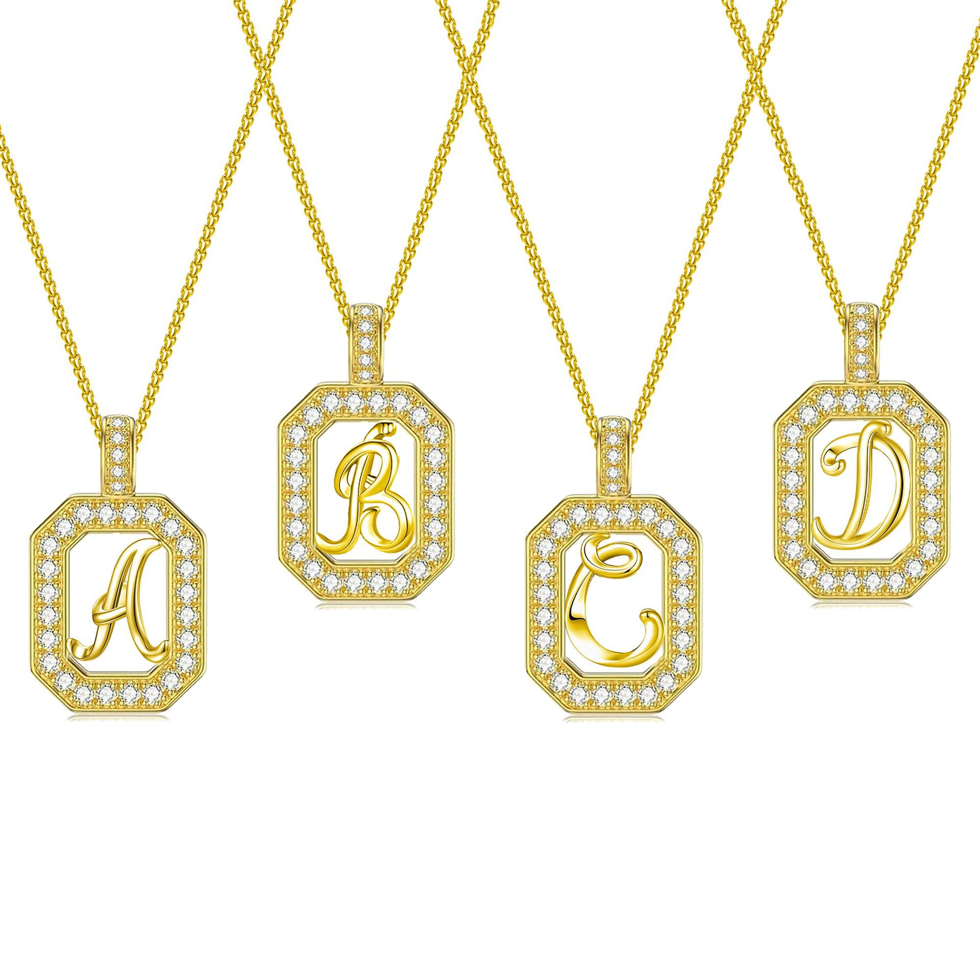 卡漫其TK跨境轻奢高级感18K金方形牌26个字母项链女士小众英文名