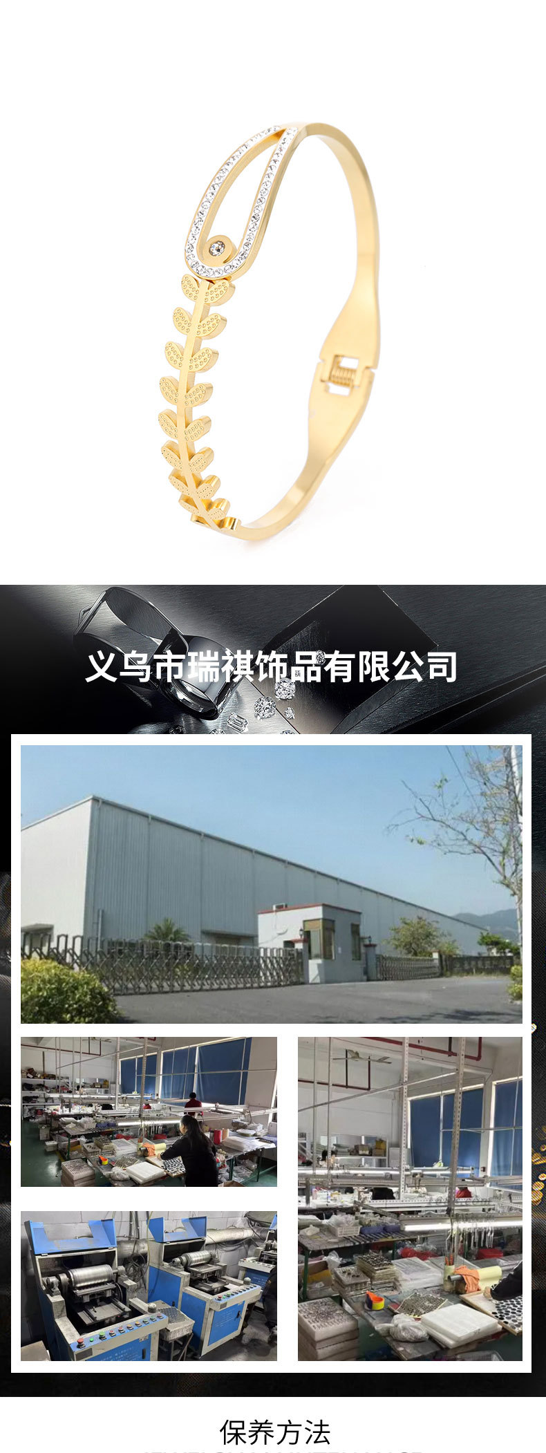 跨境爆款新中式竹节手镯高级感小众气质百搭镶钻镀金卡扣不锈钢手