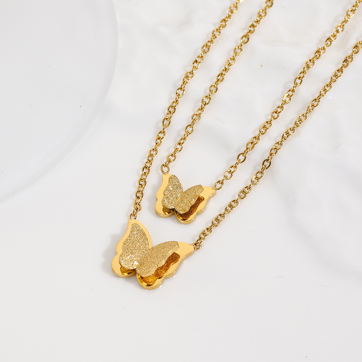 本物のチタン鋼は色あせることなく入浴できます二層蝶ネックレス女性のシンプルなインターネットセレブ鎖骨チェーンローズゴールド新しいスタイル