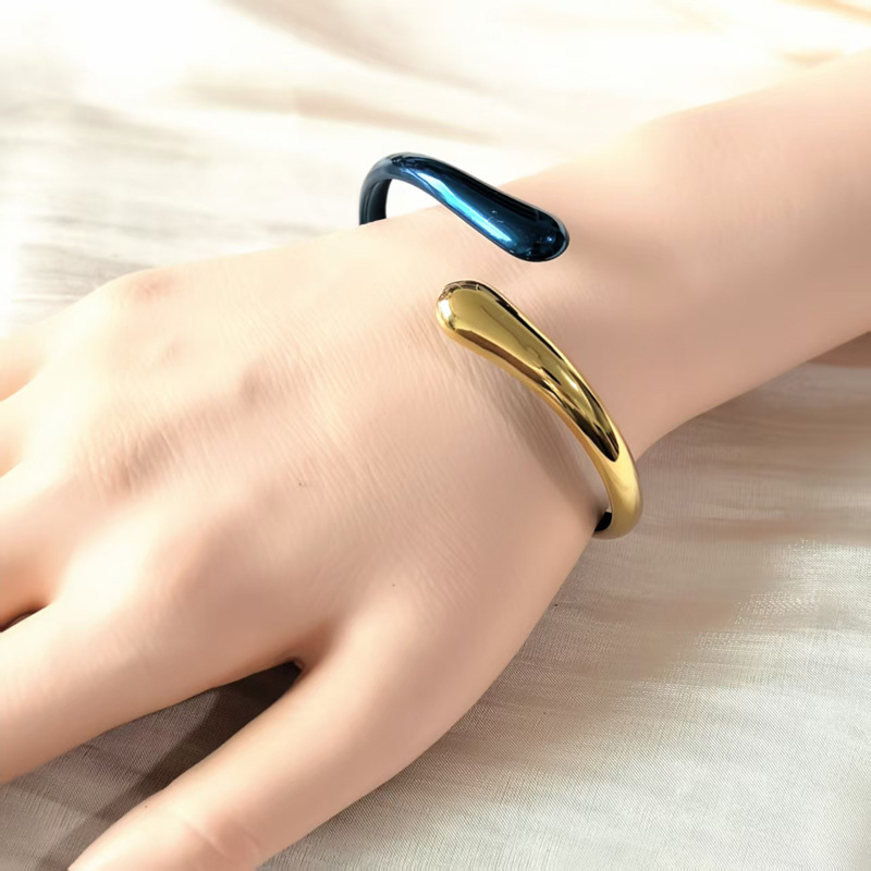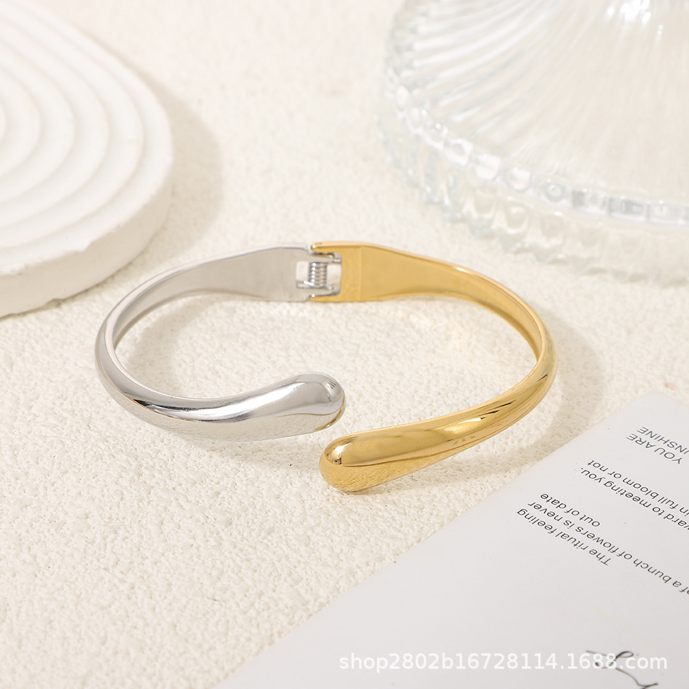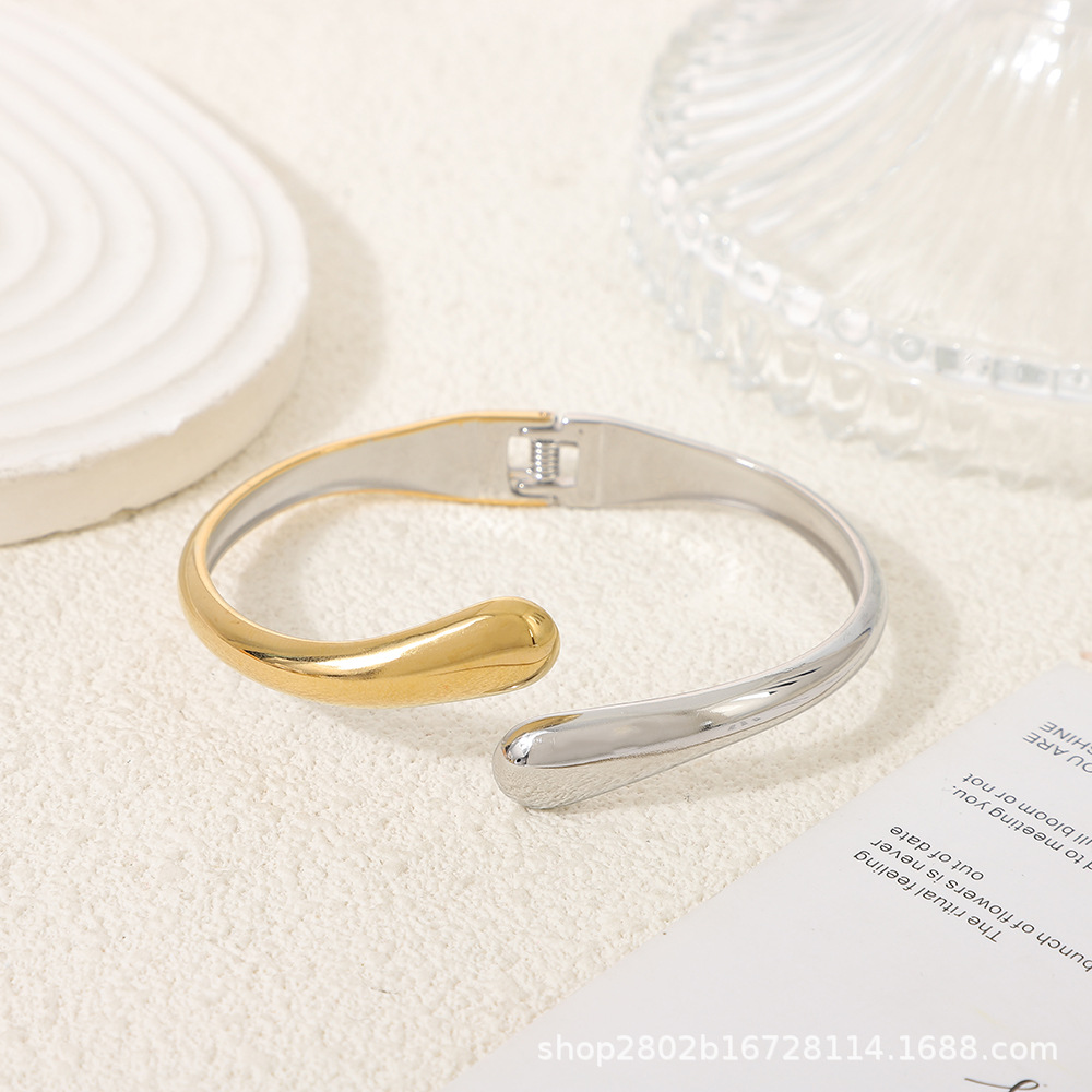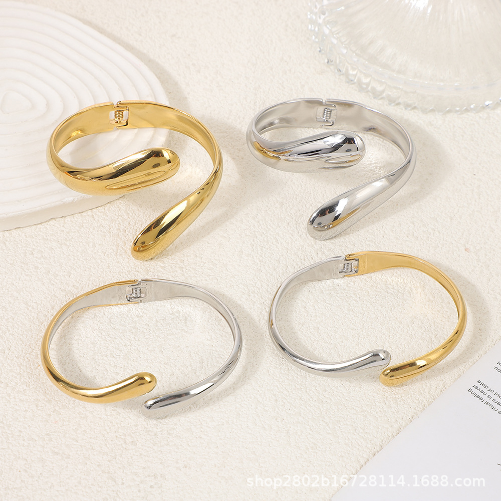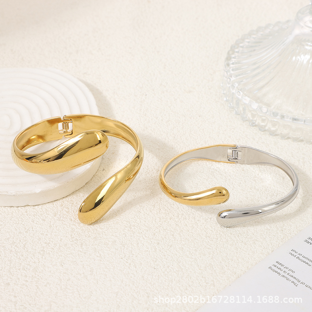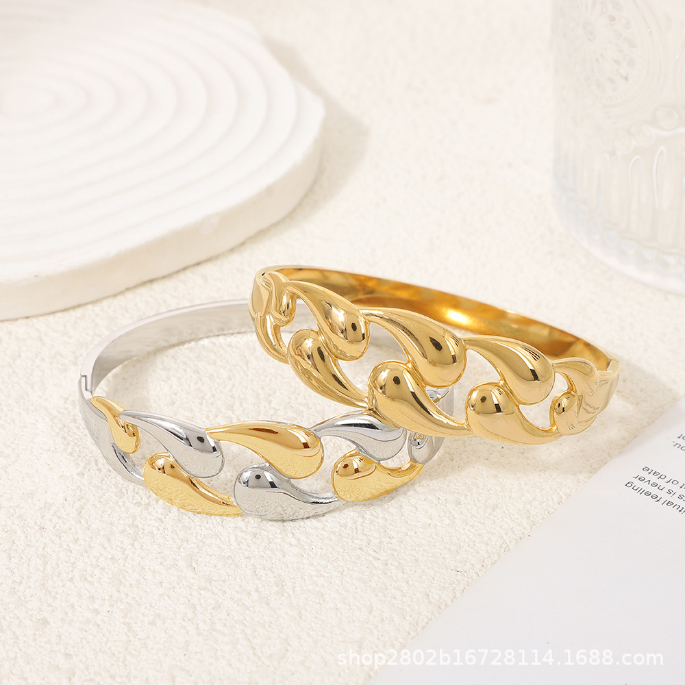 光沢水滴編みブレスレットシアトルクロスボーダー古典的なファッションカップルのステンレス18k金開口ブレスレット