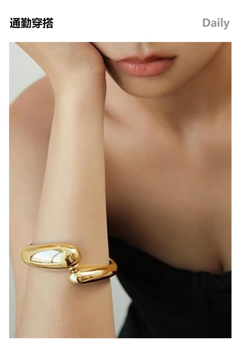 クロスボーダーのステンレスの広い版の透かし彫りの誇張の腕輪の幾何学の楕円の軽い豪華なブレスレットは本物の金の図案の油圧C型をめっきします。