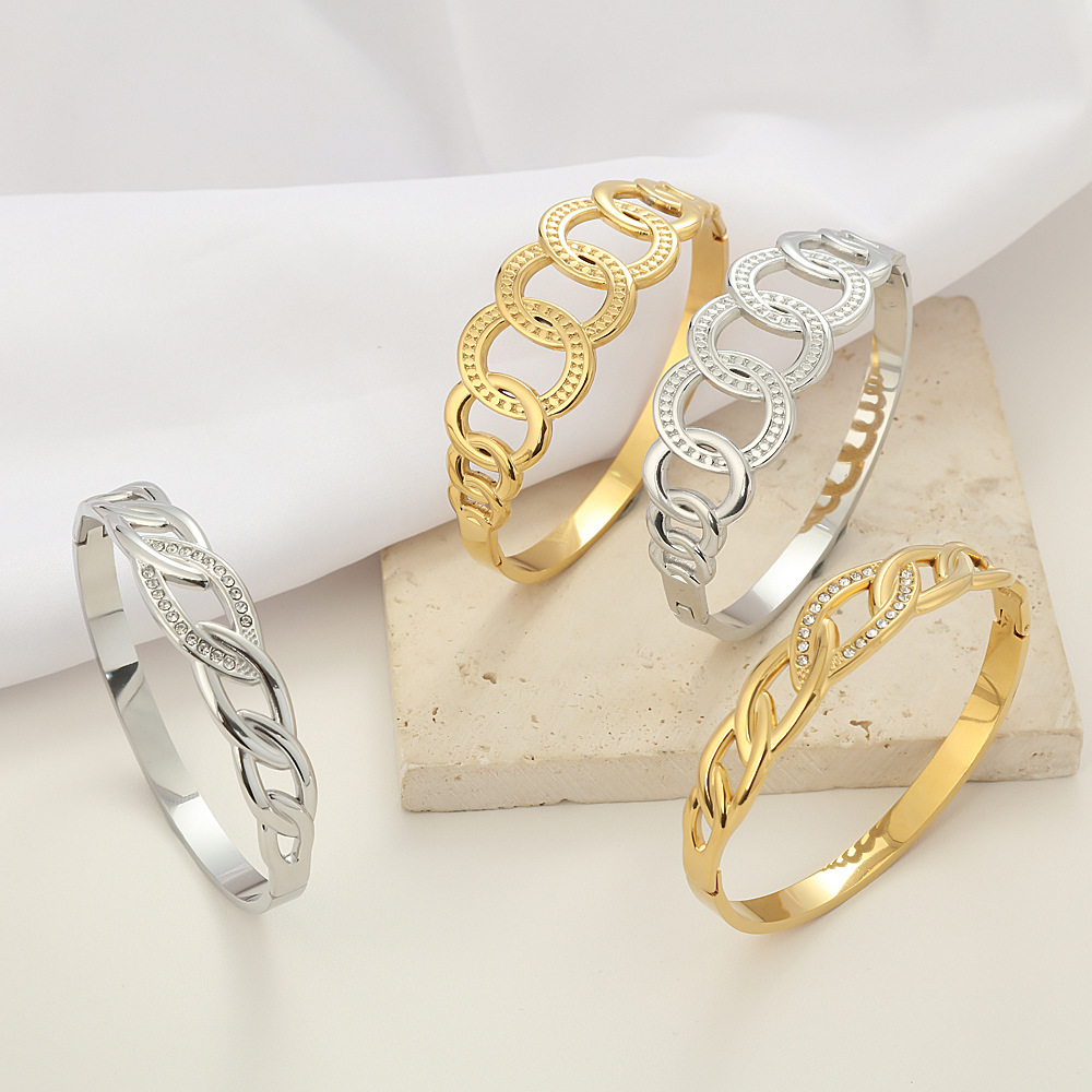 国境を越えた売れ筋の新しいチタン鋼油圧ブレスレットツイストデザインゴールドシルバー色褪せないダイヤモンドステンレススチールブレスレット