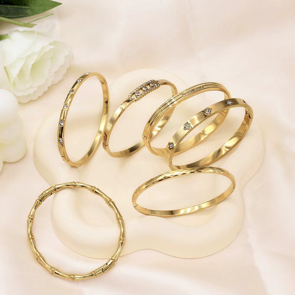 国境を越えた売れ筋のゴールデンステンレススチールブレスレット、色あせしない、女性用ハンドジュエリー、ハイエンドのオープンデザイン、ジルコンとダイヤモンド