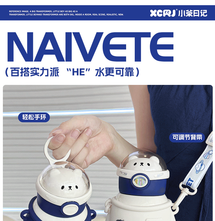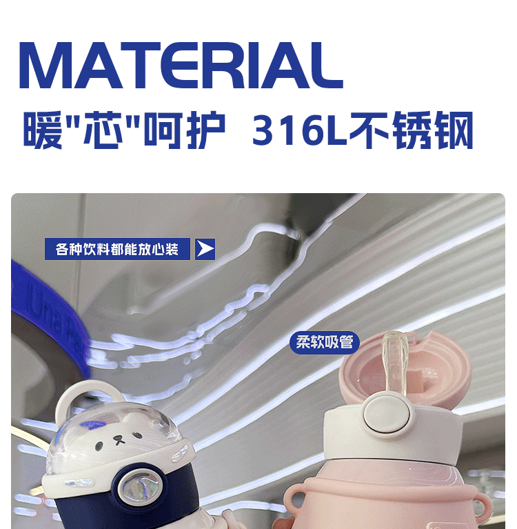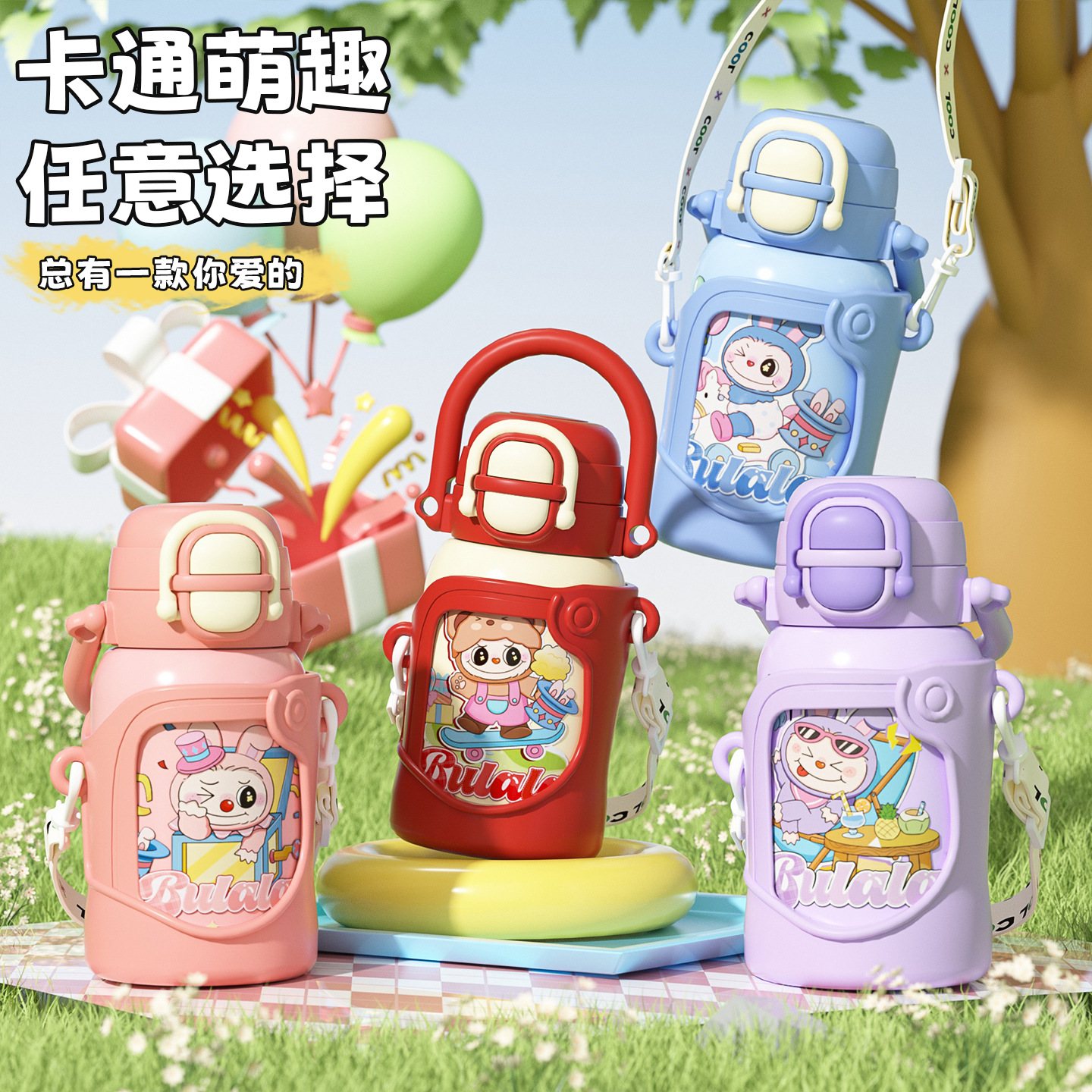 布拉拉高颜值儿童保温杯男女学生上学可爱背带水壶不锈钢手拎水杯