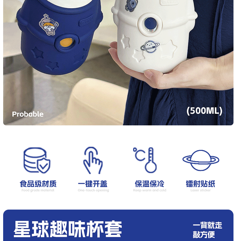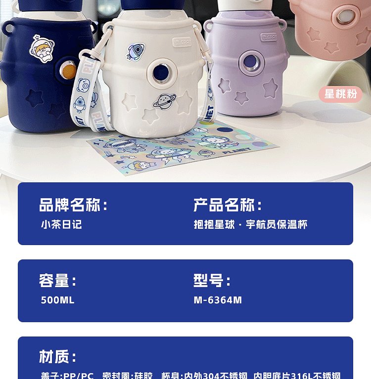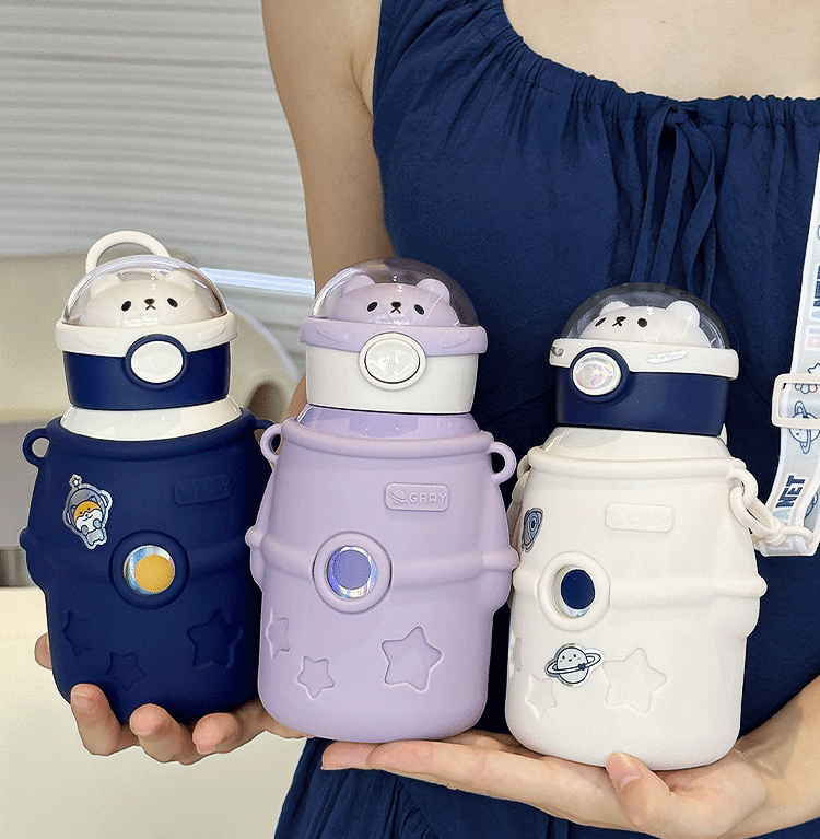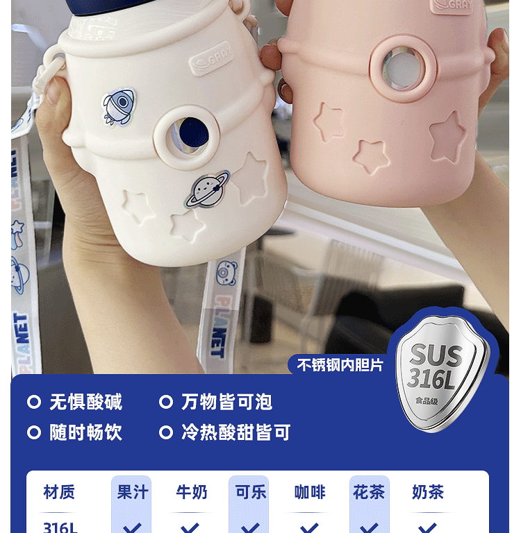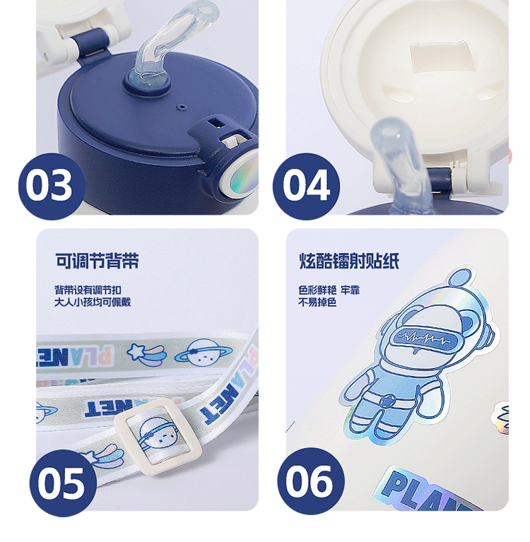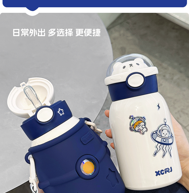 保温カップ316ステンレス子供水カップ宇宙飛行士ストローカップ子供学生高颜値携帯保冷カップ