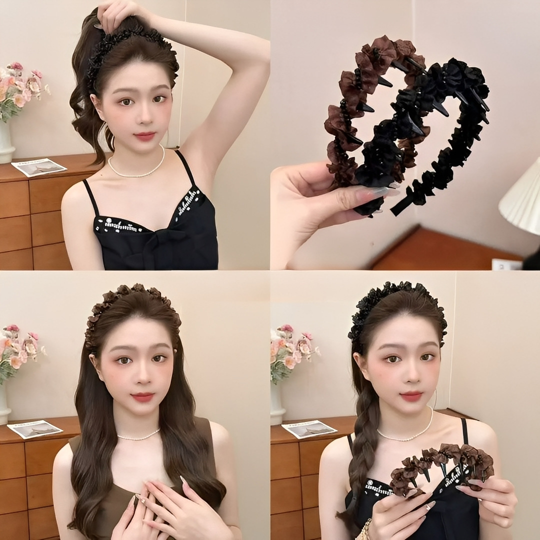 赫本风木耳边串珠发箍减龄带齿梳高颅顶头箍显脸小防滑洗脸压发卡