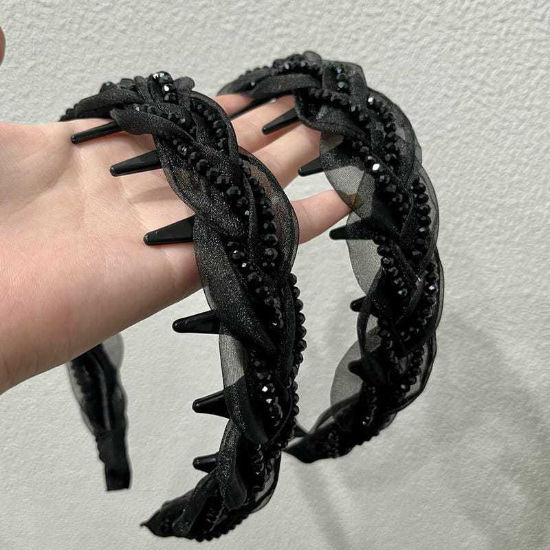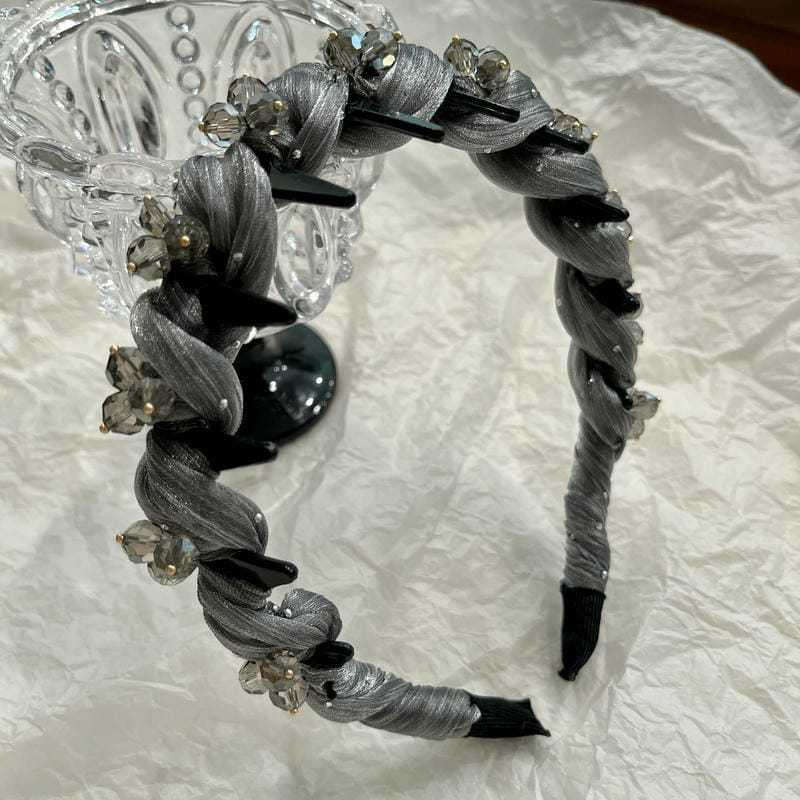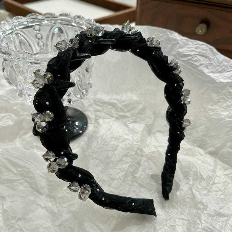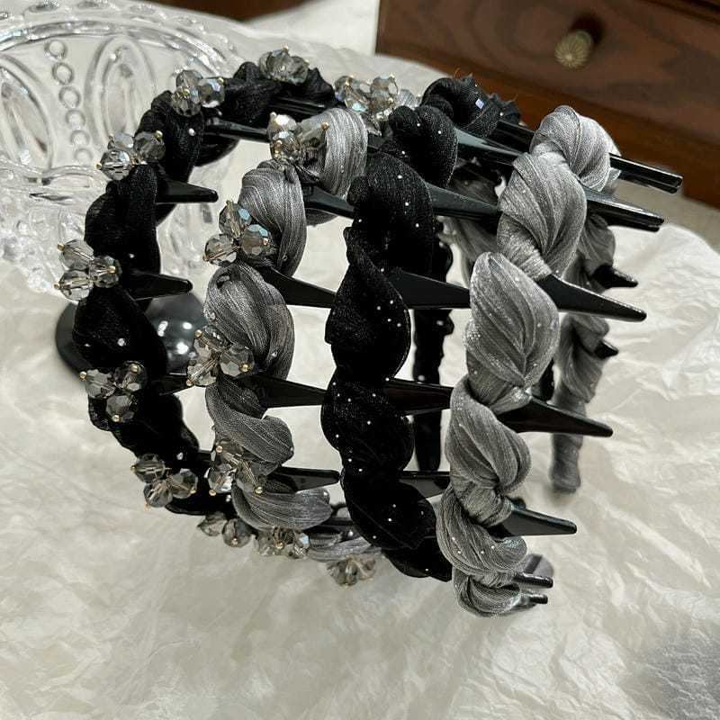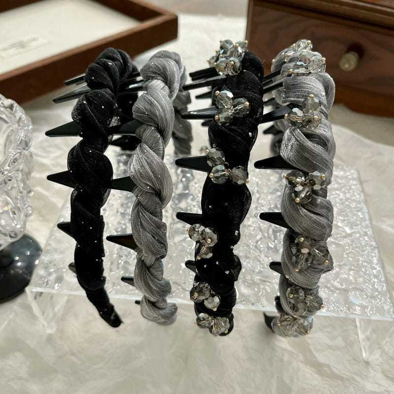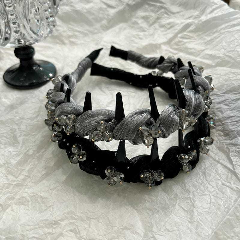 春夏のレトロな網糸の歯付き水晶のカチューシャの女性の滑り止めの顔のカチューシャ2025の新型の高い頭のトップの頭の飾り