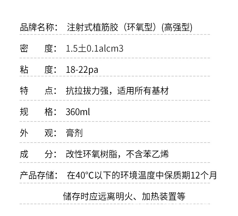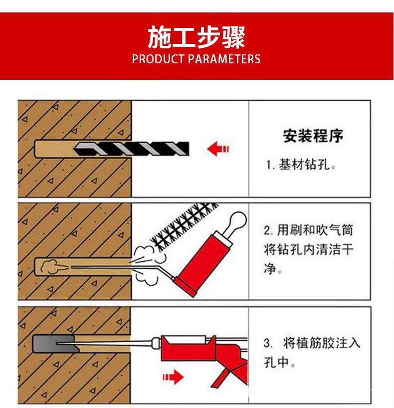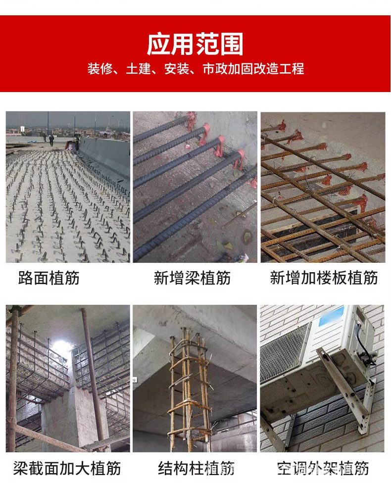 高強度エポキシ建築用鉄筋コンクリート橋梁板柱構造用アンカー接着剤、植筋接着剤、岩盤接着剤、防水補強材