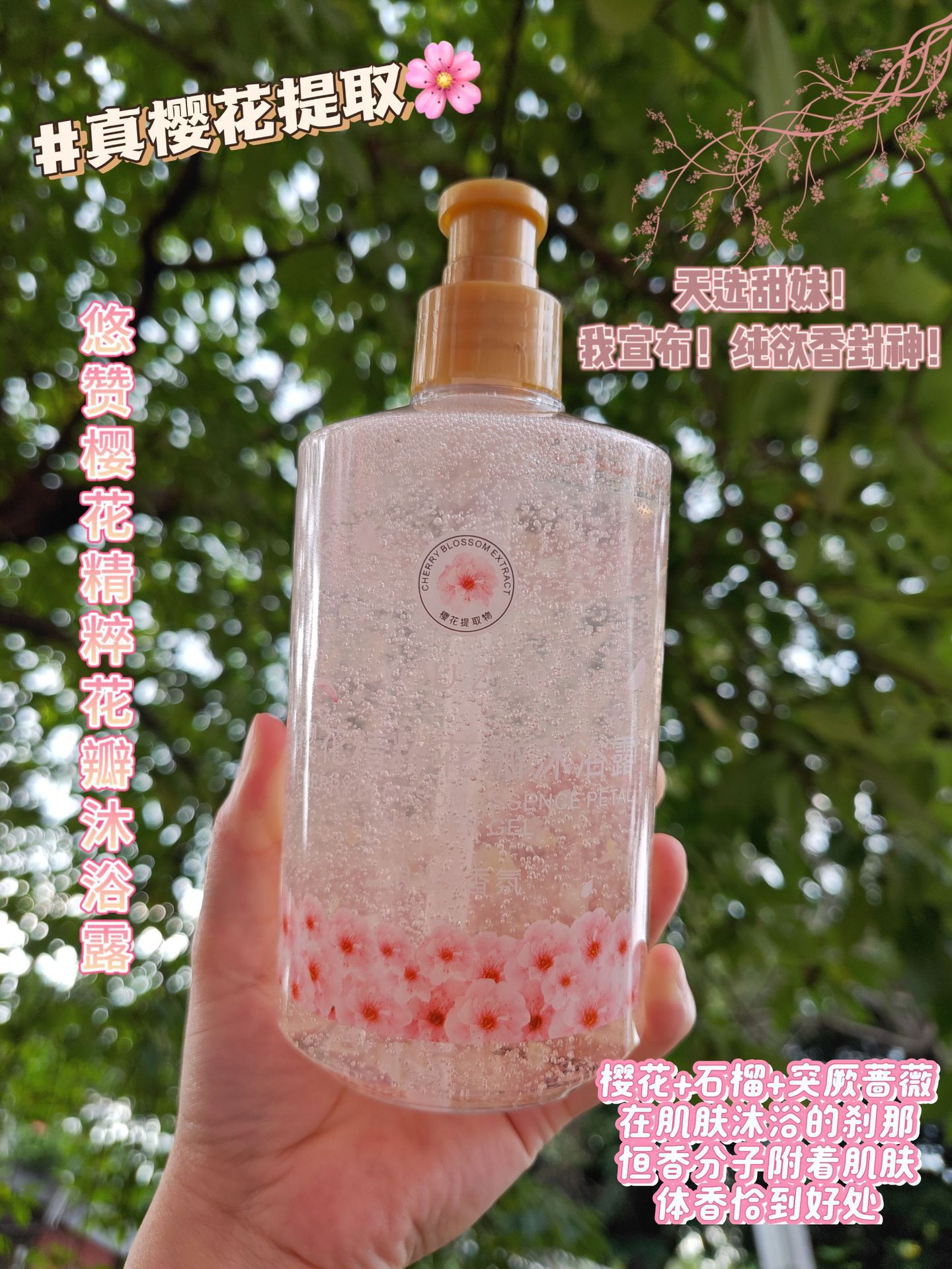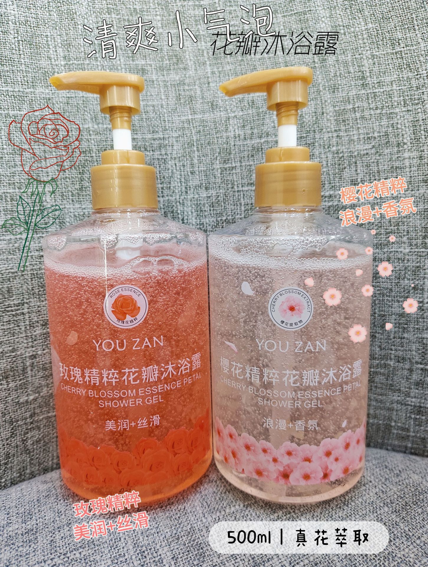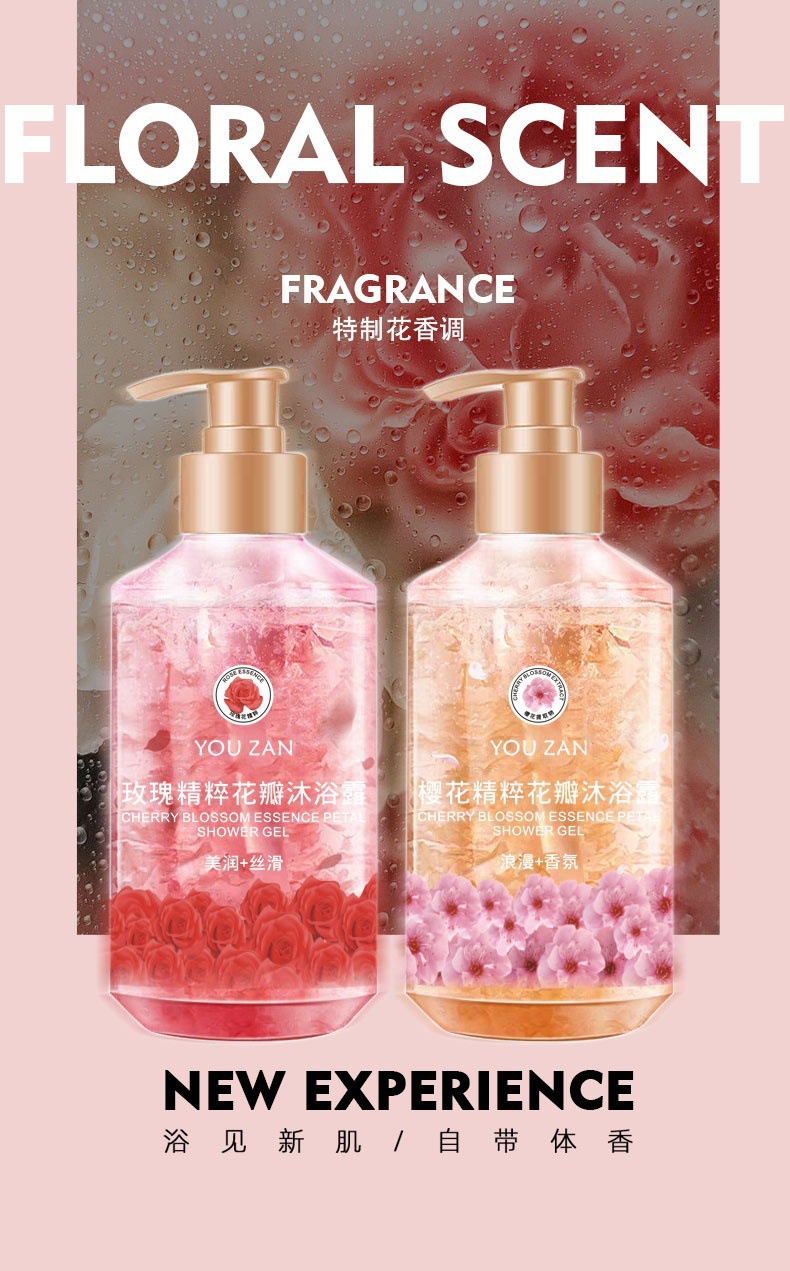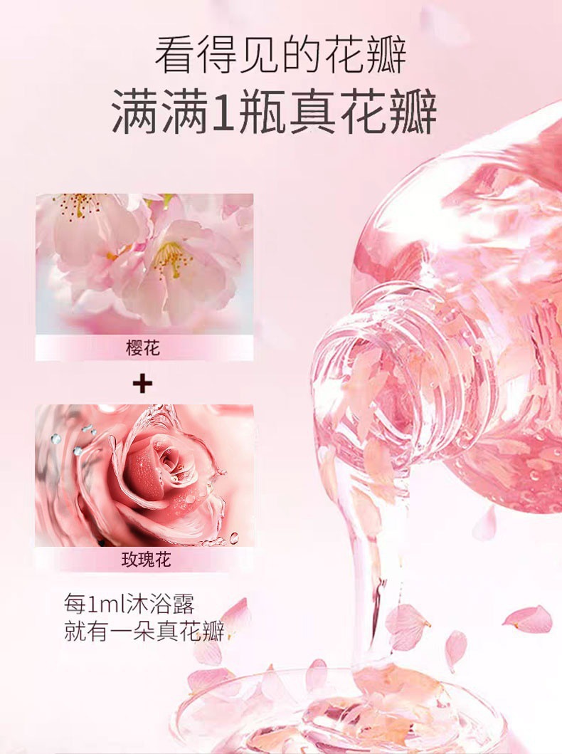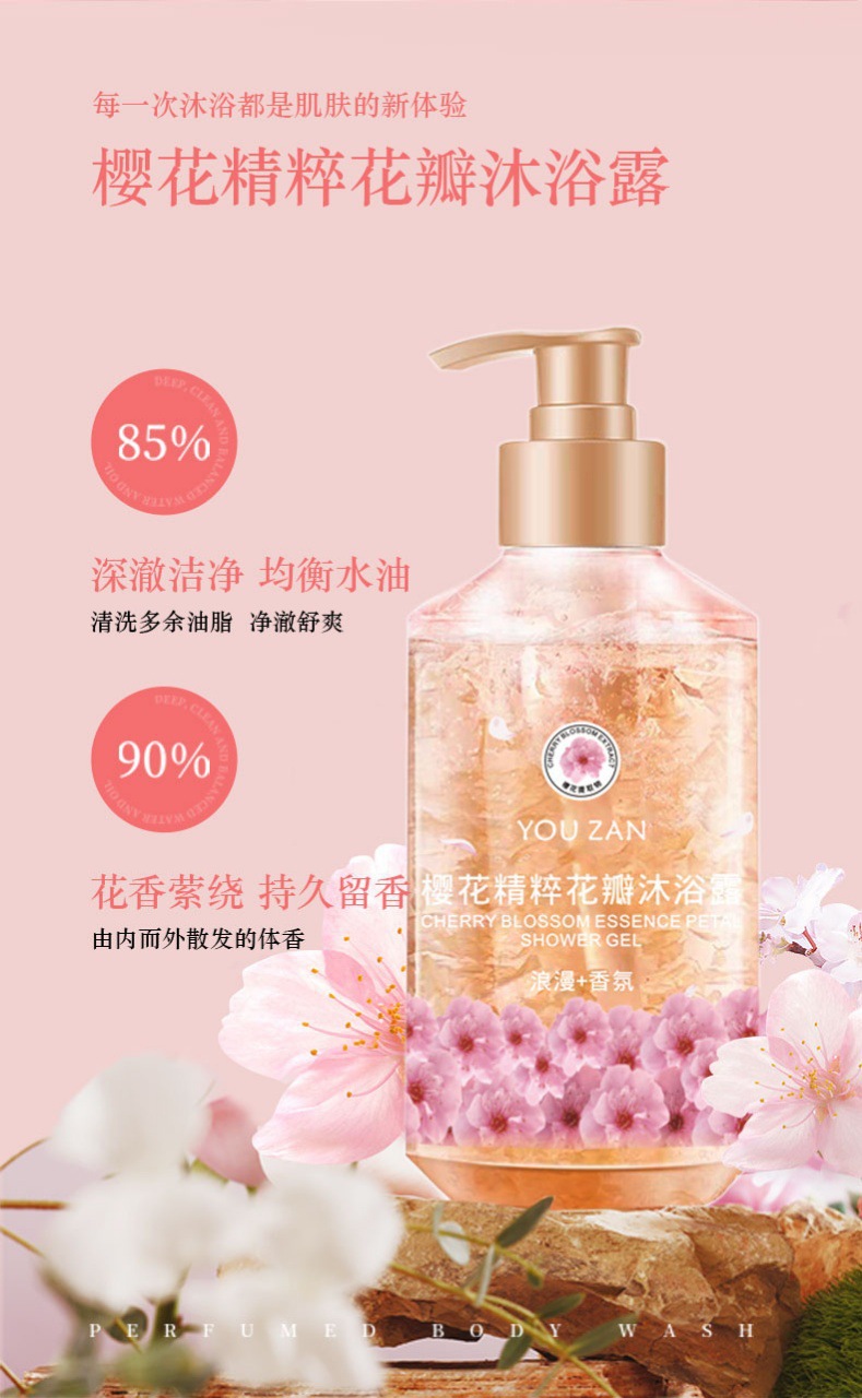 悠赞玫瑰樱花精粹花瓣沐浴露水感舒缓微氧小气泡清新洁净直播福利