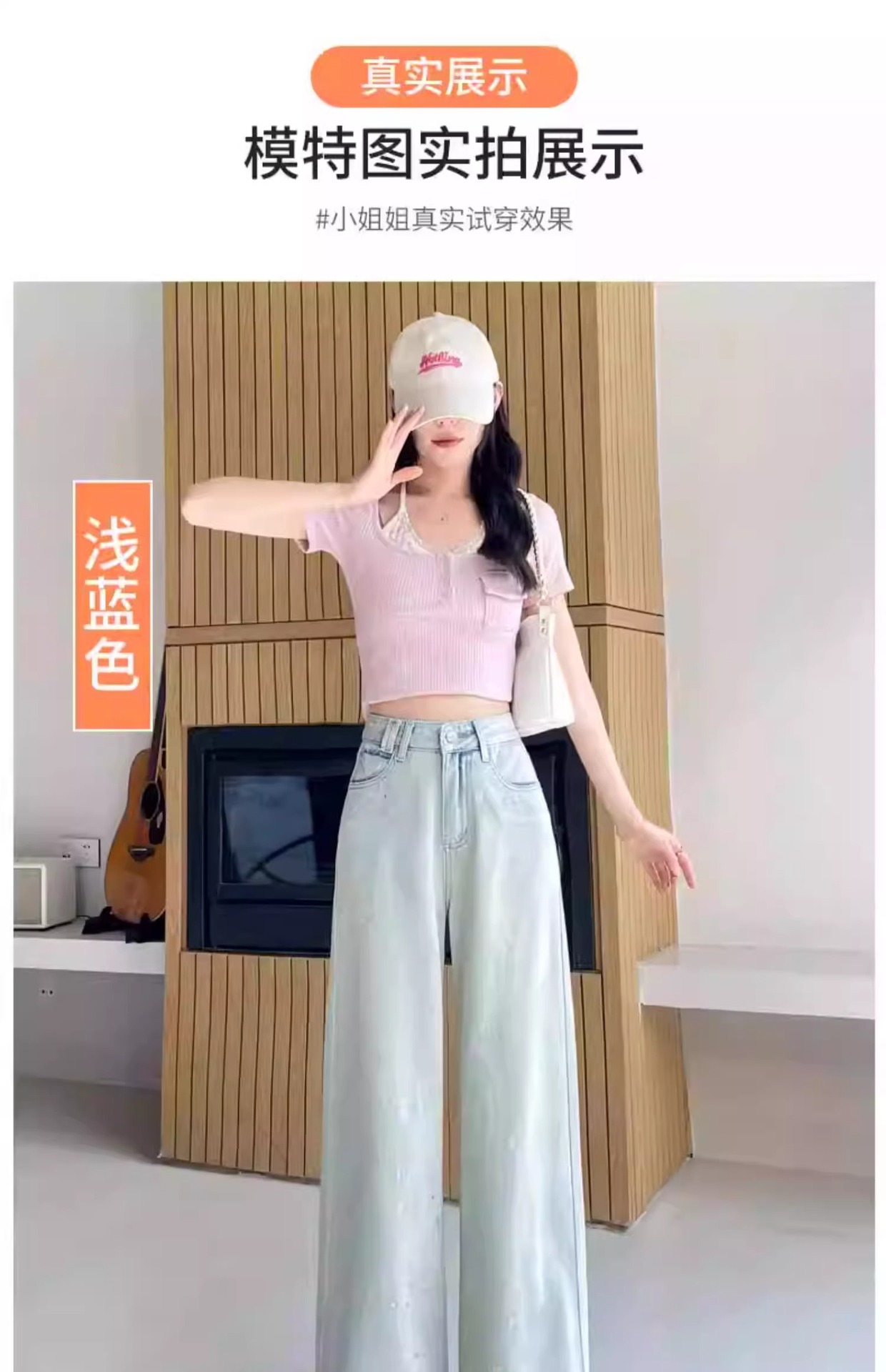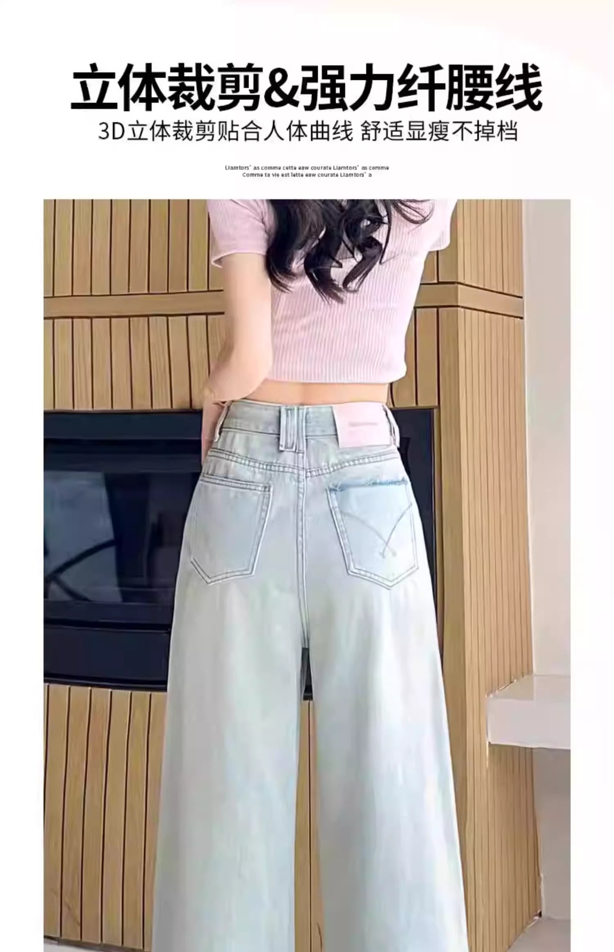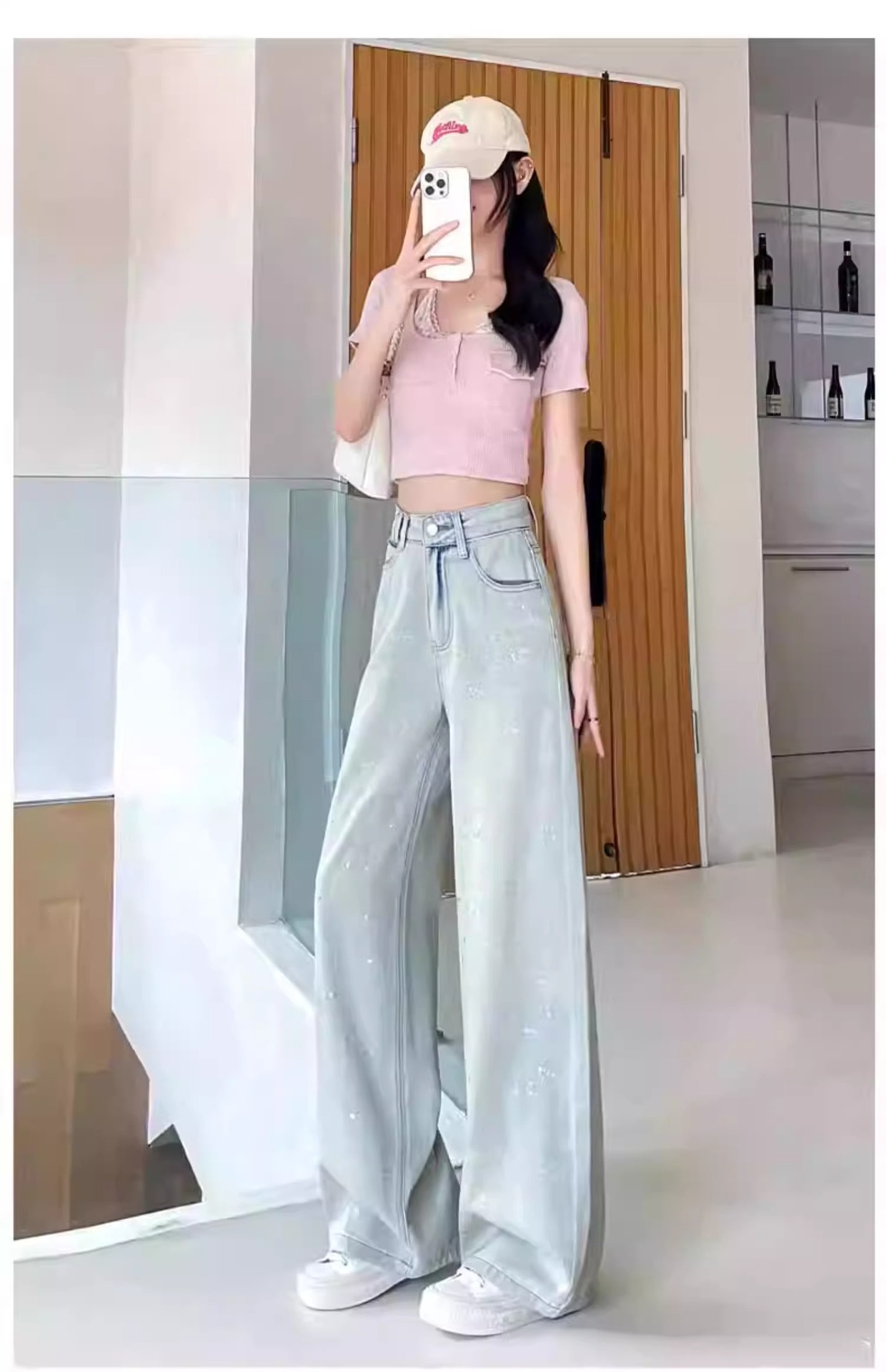 蓝色满天星重工烫钻爆闪阔腿牛仔裤女春季新款高腰宽松显瘦直筒裤