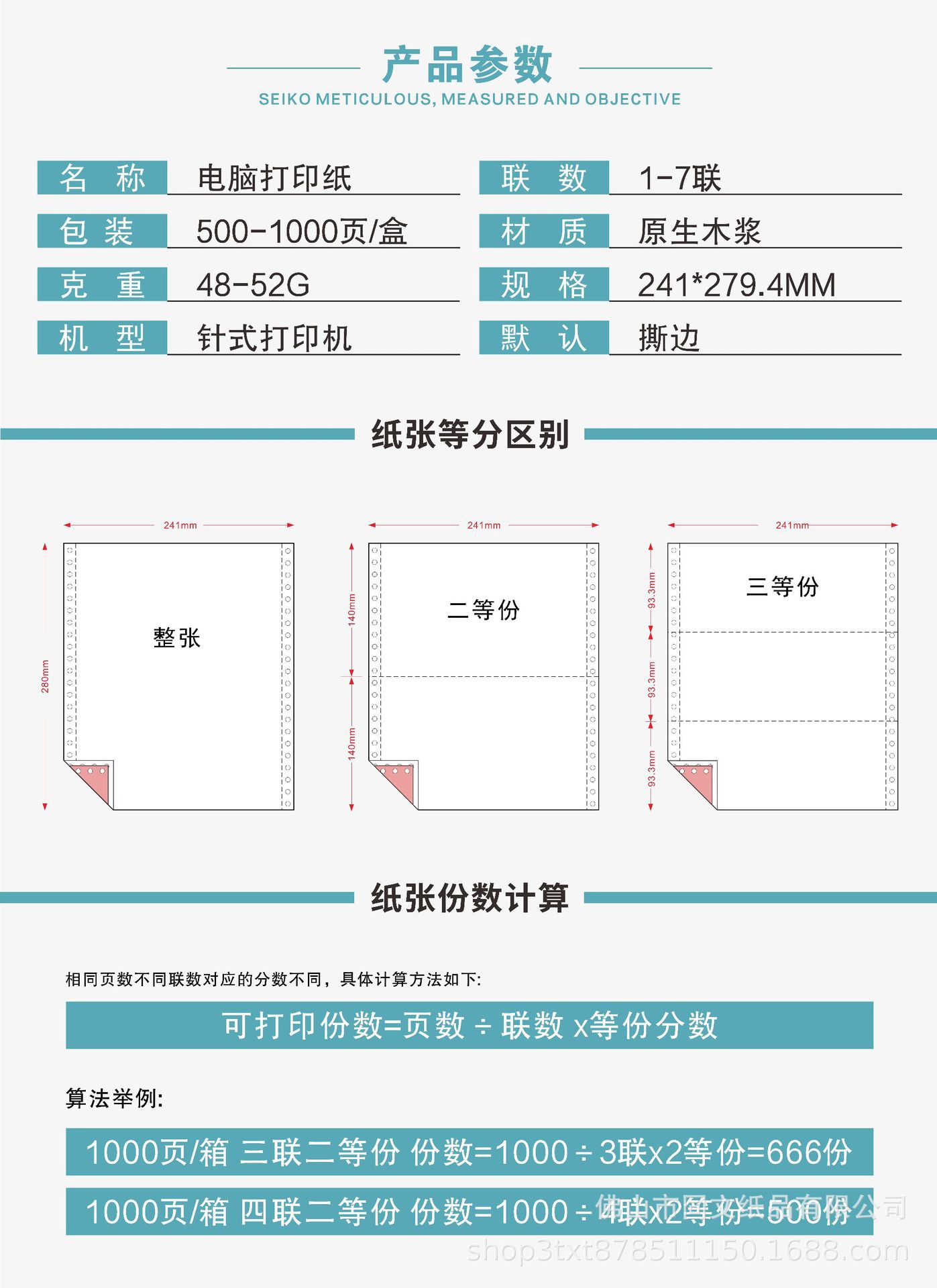 针式电脑打印纸a4一联二联三联四联五联一等分二等分三等分针打纸