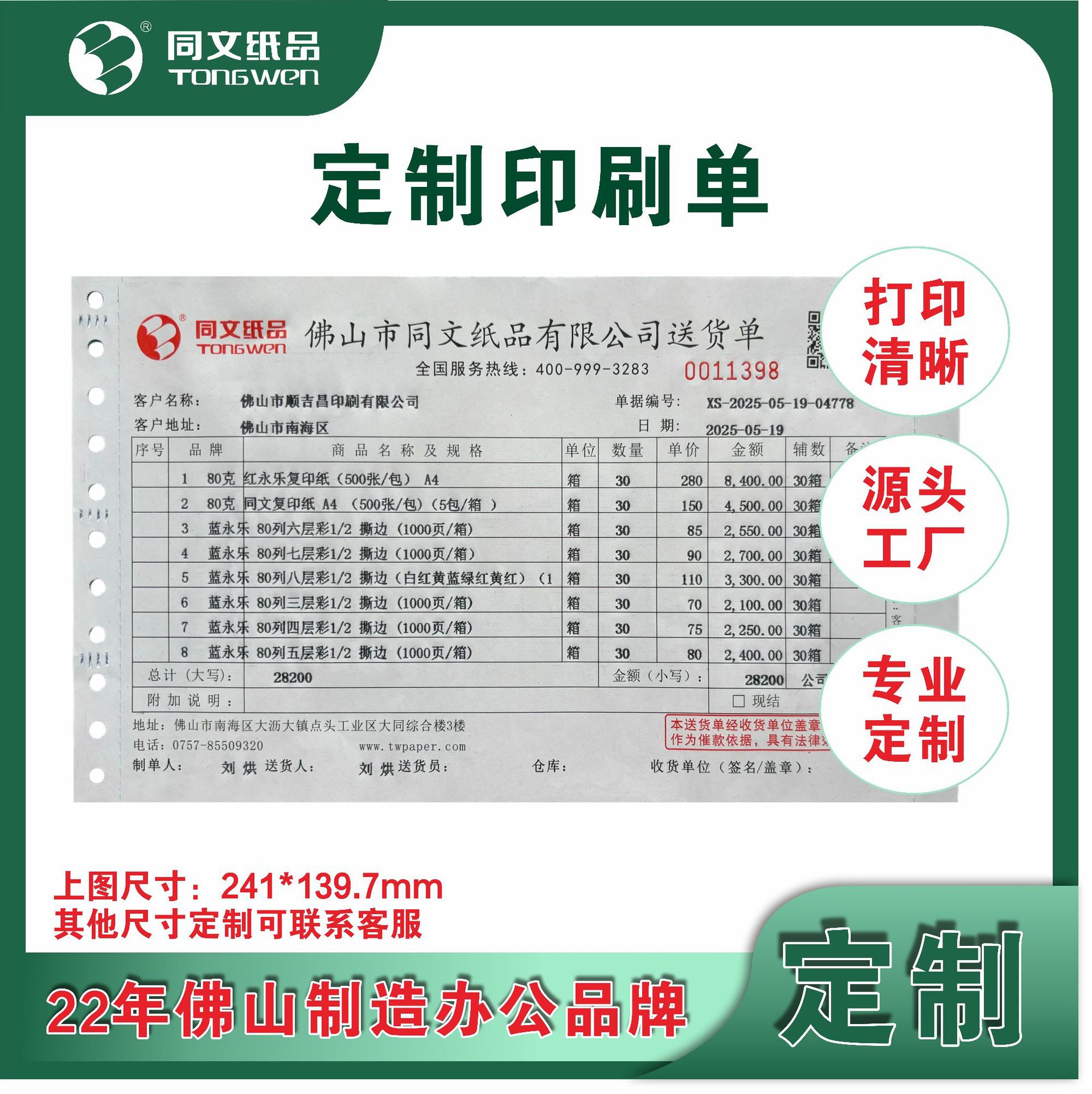 机打送货单销售单带孔三联单 电脑票据 订做连续打印纸印刷单