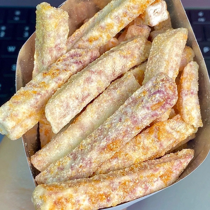 乾燥カニ卵とタロイモ、サクサク紫ストリップ、カジュアルスナック、タロイモストリップ、全箱、専門メーカー卸売