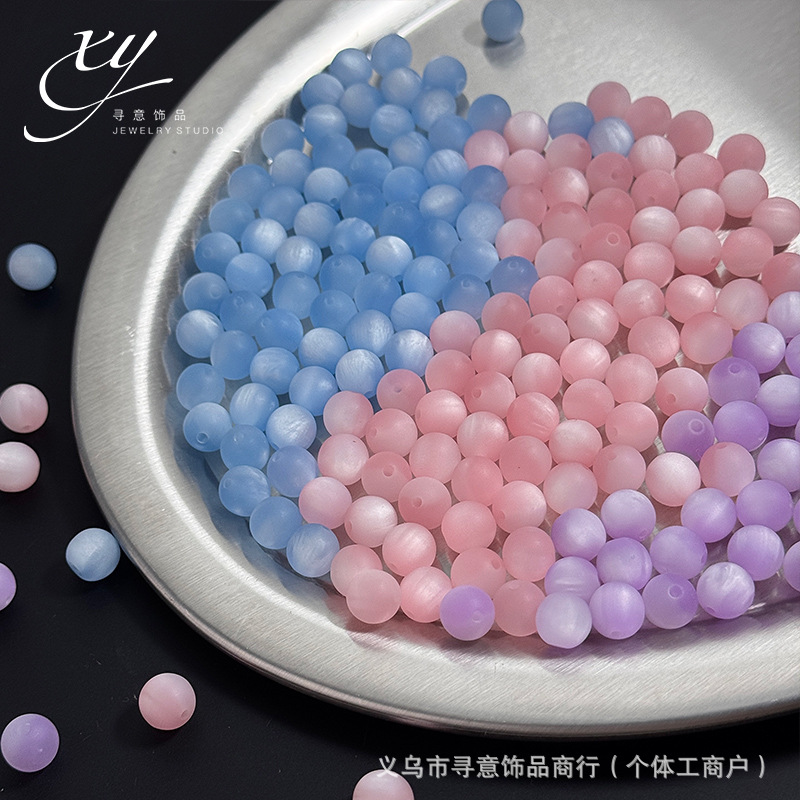 亚克力圆珠手串配珠磨砂猫眼珠双色猫眼圆珠diy饰品配件串珠散珠