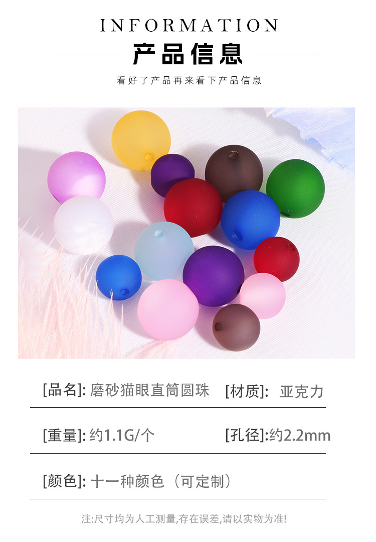 新款磨砂猫眼串珠工艺亚克力散珠DIY手机链钥匙扣饰品配件