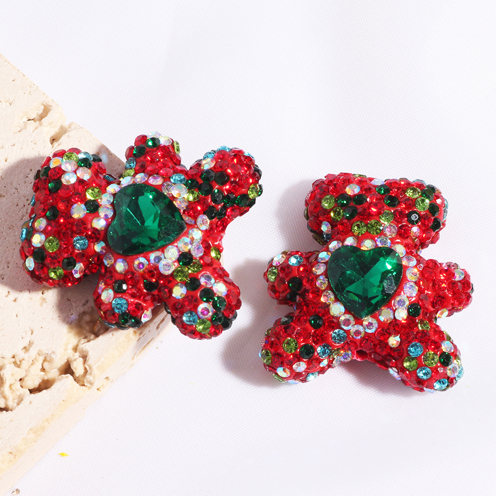 満天の星は熊のハート型のジルコンのボールのまっすぐな穴のビーズのDIYの携帯電話のチェーンのキーチェーンのチェーンの部品をいっぱいにします。