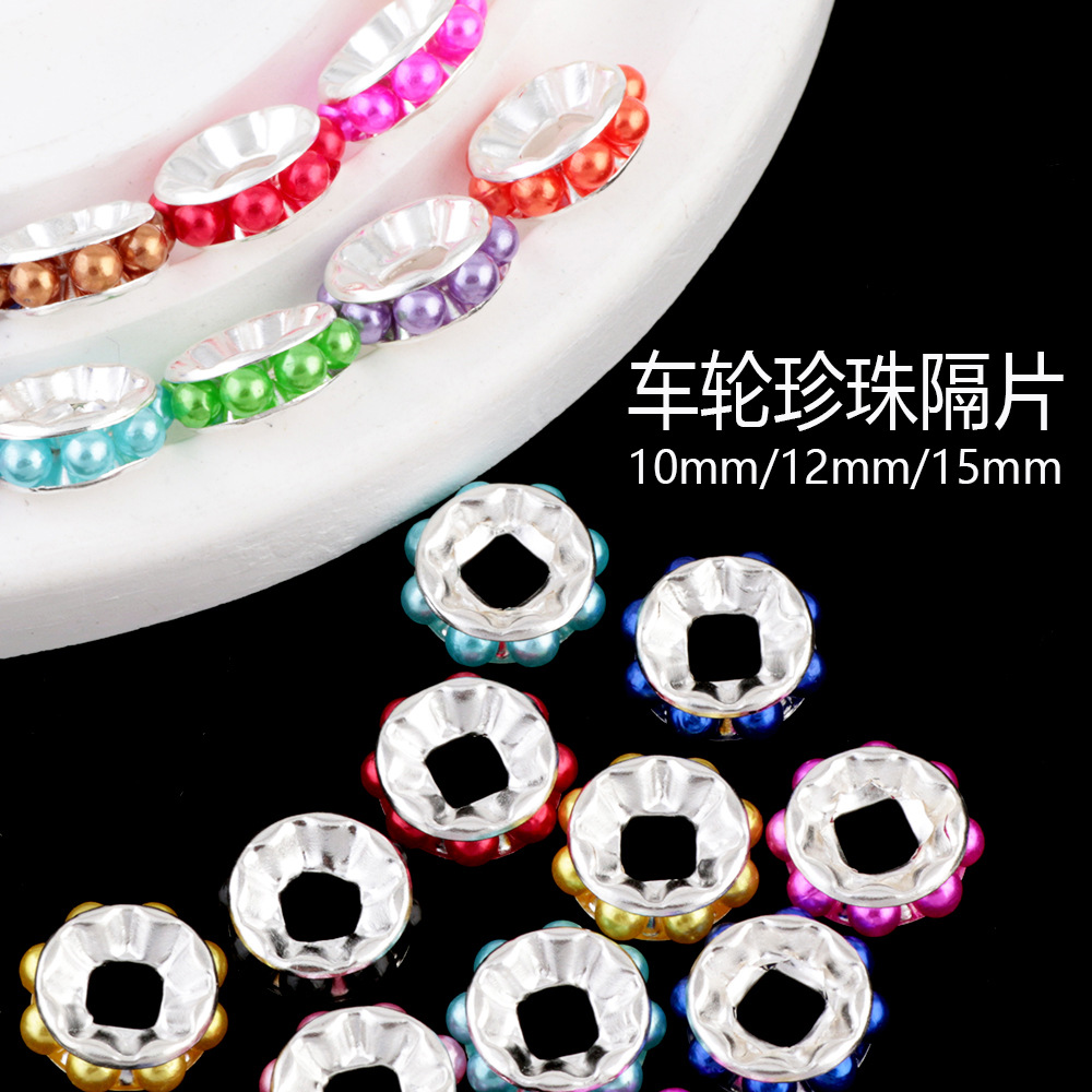 クラシックカラーホイールパール、多様なサイズのスペーサービーズ、直穴ビーズ、DIY携帯ストラップ、キーホルダー、バッグチェーンアクセサリー